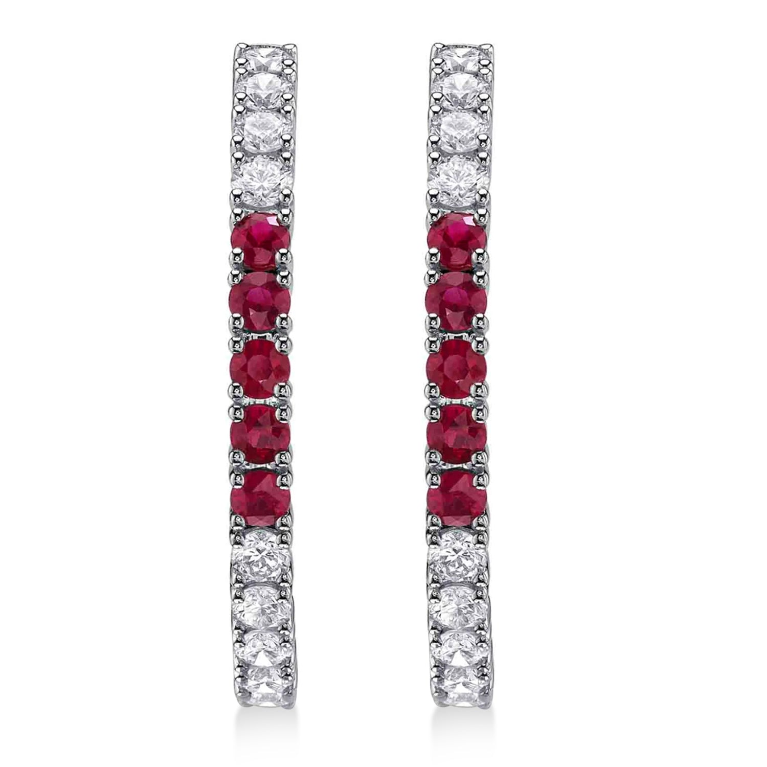 Lab Grown Ruby & Diamond Hoop Earrings 14K White Gold (1.51ct)
