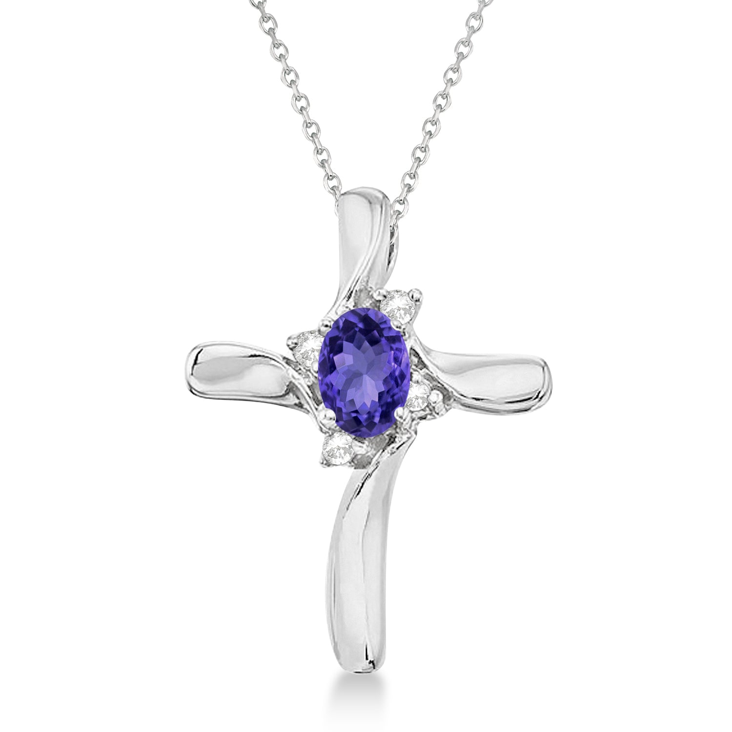 Lab Tanzanite & Lab Diamond Cross Necklace Pendant 14k White Gold (0.5