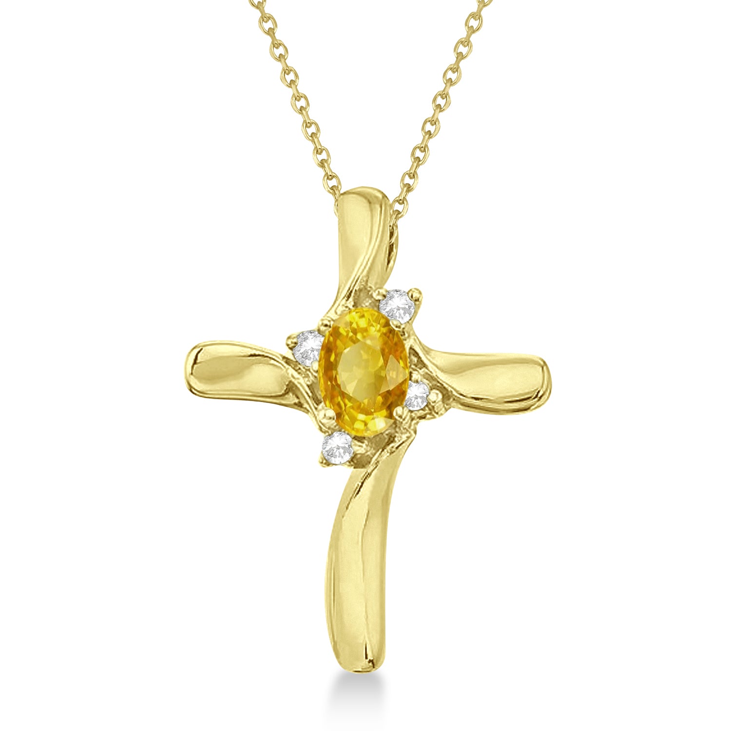 Lab Yellow Sapphire & Lab Diamond Cross Necklace Pendant 14k Yellow Go