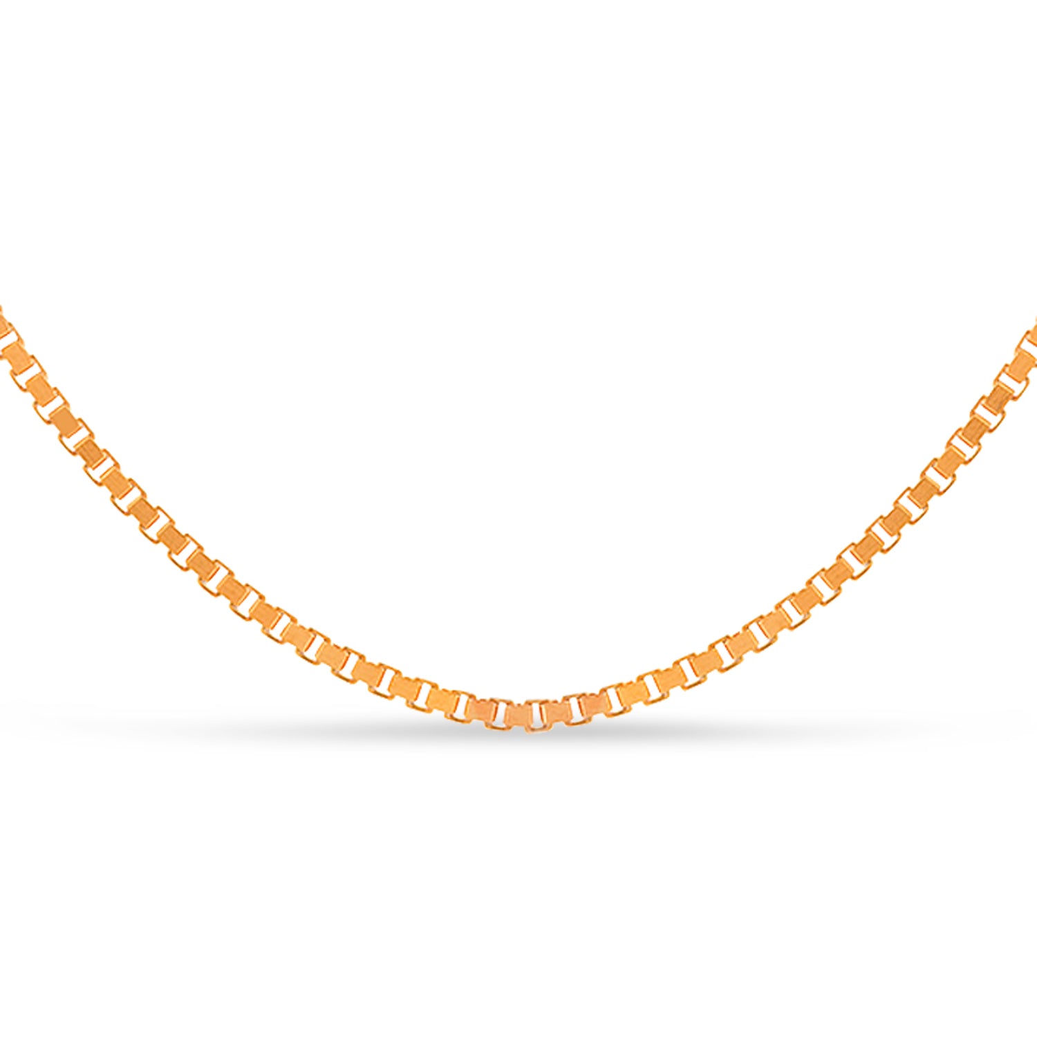 This box chain necklace is styled in 14K rose gold. The necklace secures with a secure lobster lock clasp.