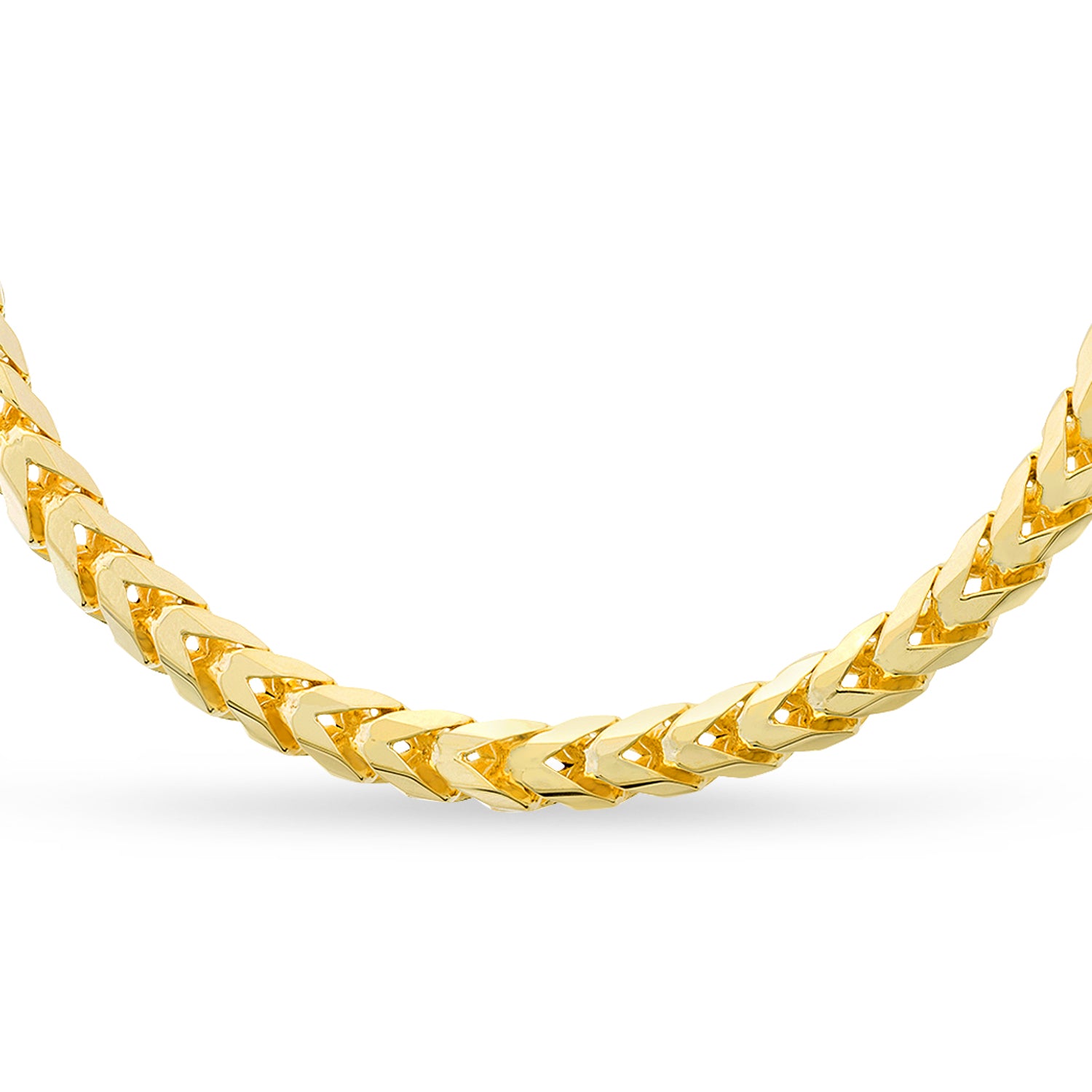 This franco chain necklace is styled in 14K yellow gold. The necklace secures with a secure lobster lock clasp.