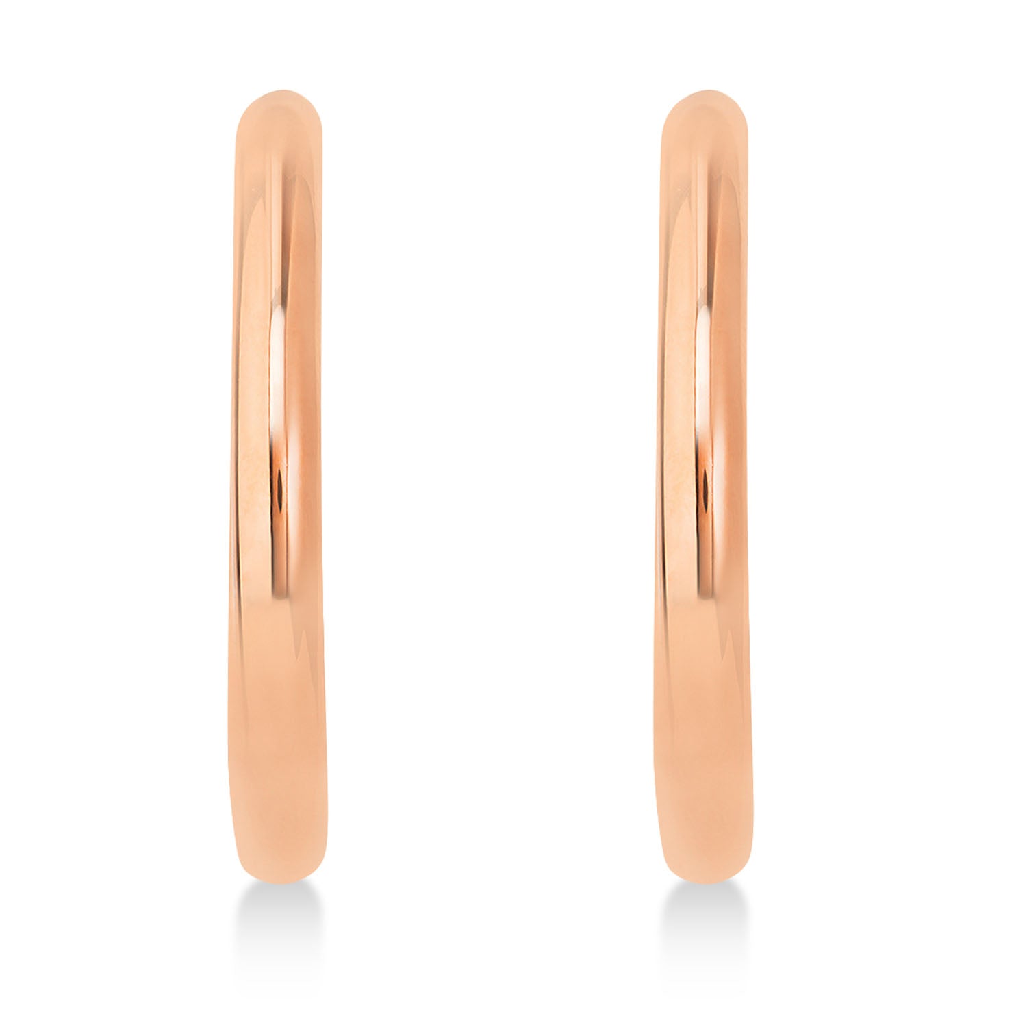This thick 14k rose gold open hoop earring is crafted to be lightweight for easy...