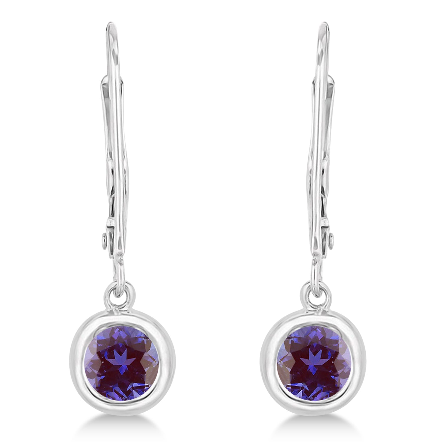 Leverback Dangling Drop Lab Alexandrite Earrings 14k White Gold (0.50ct)