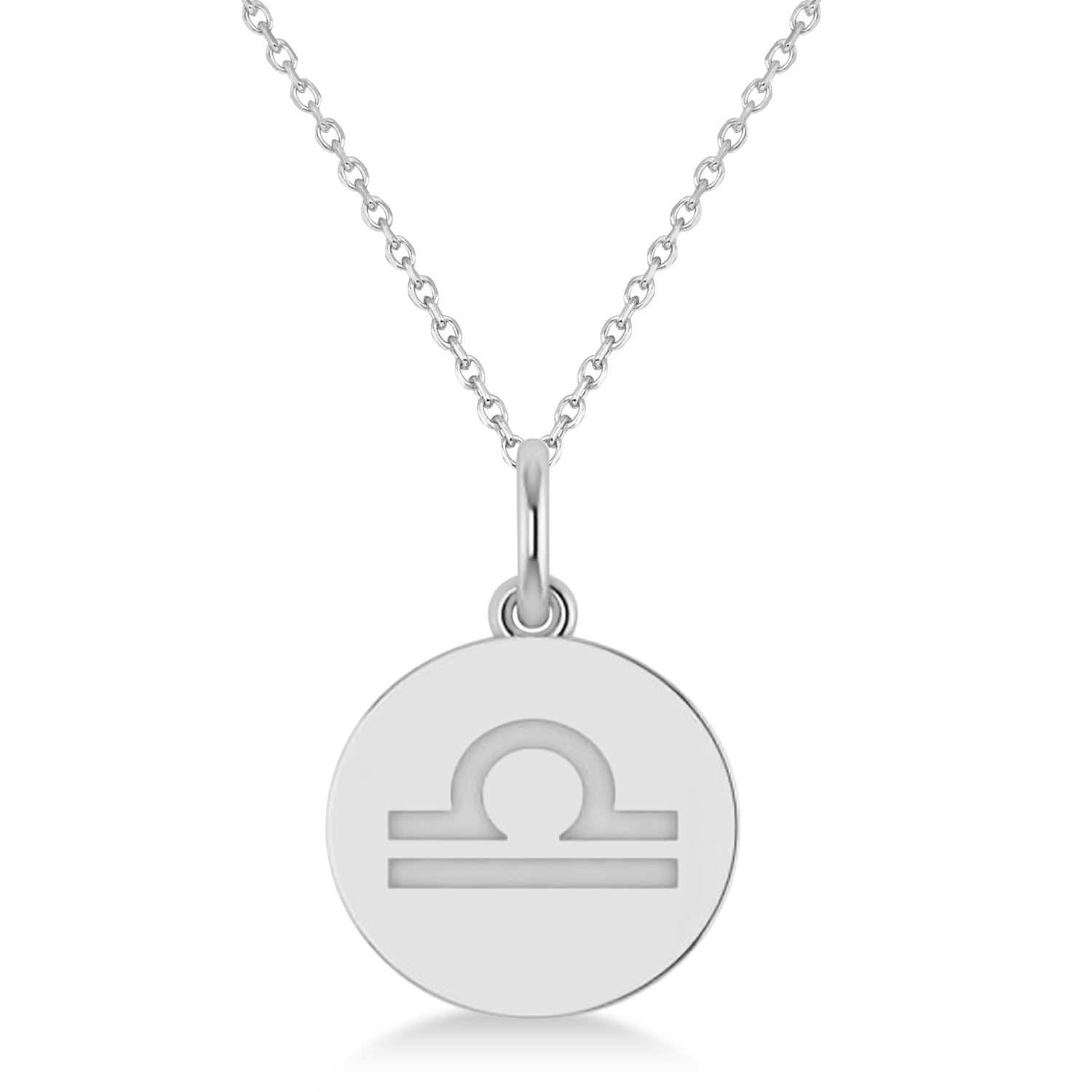 Libra Disk Zodiac Pendant Necklace 14k White Gold