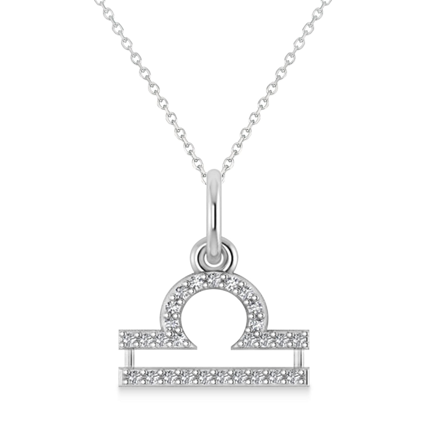 Libra Zodiac Diamond Pendant Necklace 14k White Gold (0.135ct)
