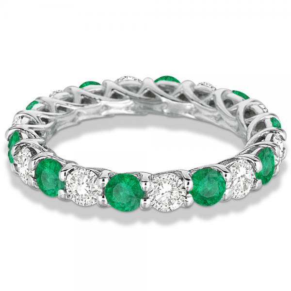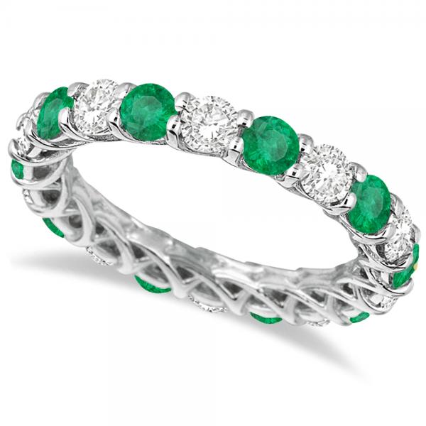 Luxury Diamond & Emerald Eternity Ring Band 14k White Gold (4.20ct)
