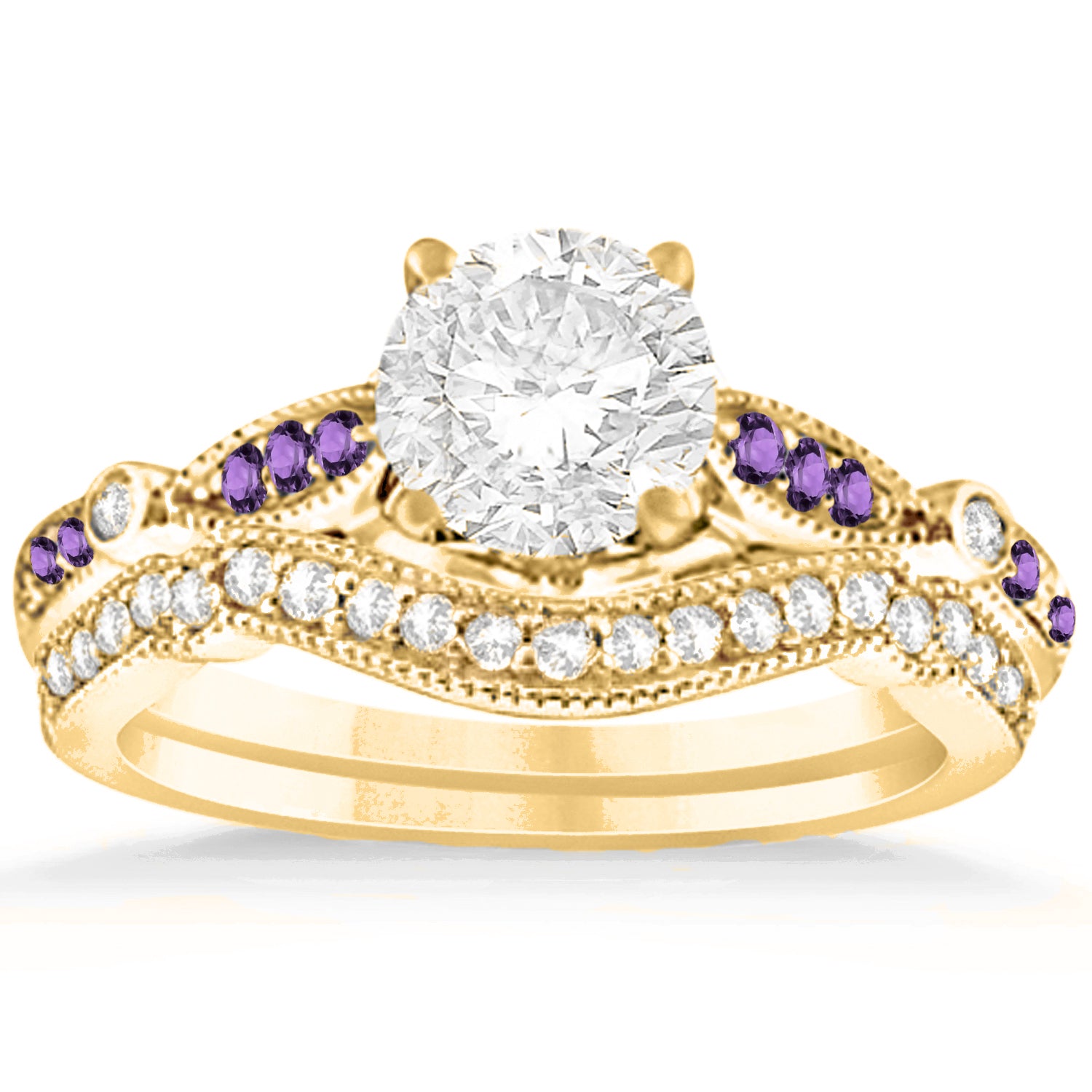 Marquise & Dot Amethyst Vintage Bridal Set in 14k Yellow Gold (0.29ct)