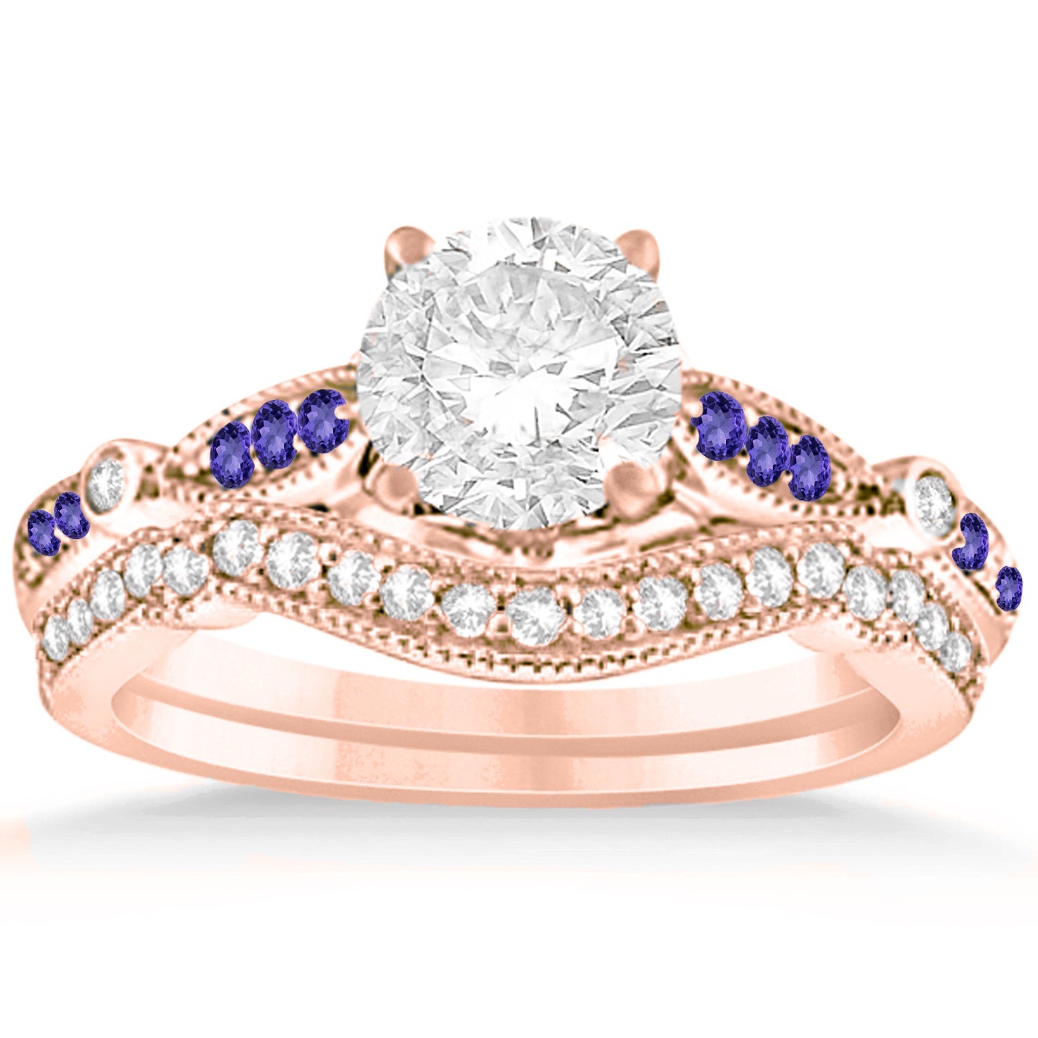 Marquise & Dot Tanzanite Vintage Bridal Set in 14k Rose Gold (0.29ct)
