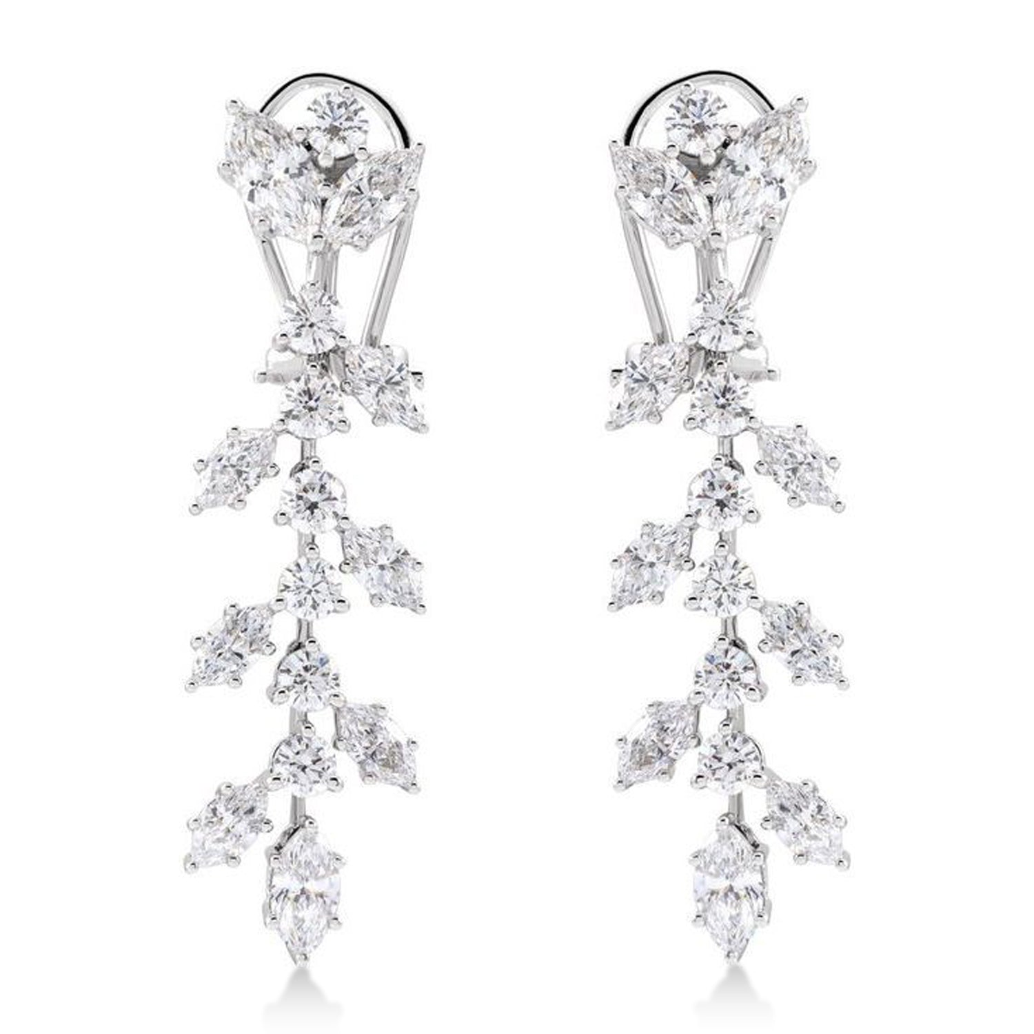 Elevate your style with these eco-friendly and ethically sourced chandelier earrings, designed for those who appreciate the beauty of lab-grown diamonds. Crafted in luminous 14K white gold, these earrings showcase lab-grown marquise diamonds totaling 4.25 carats, offering unparalleled brilliance and sustainability. The clip-on style ensures effortless wear, providing comfort without compromising on glamour for any occasion.Whether you're attending a special event or making a bold fashion statement, these Marquise Diamond Lab-Grown Chandelier Earrings redefine luxury with their sustainable elegance.
