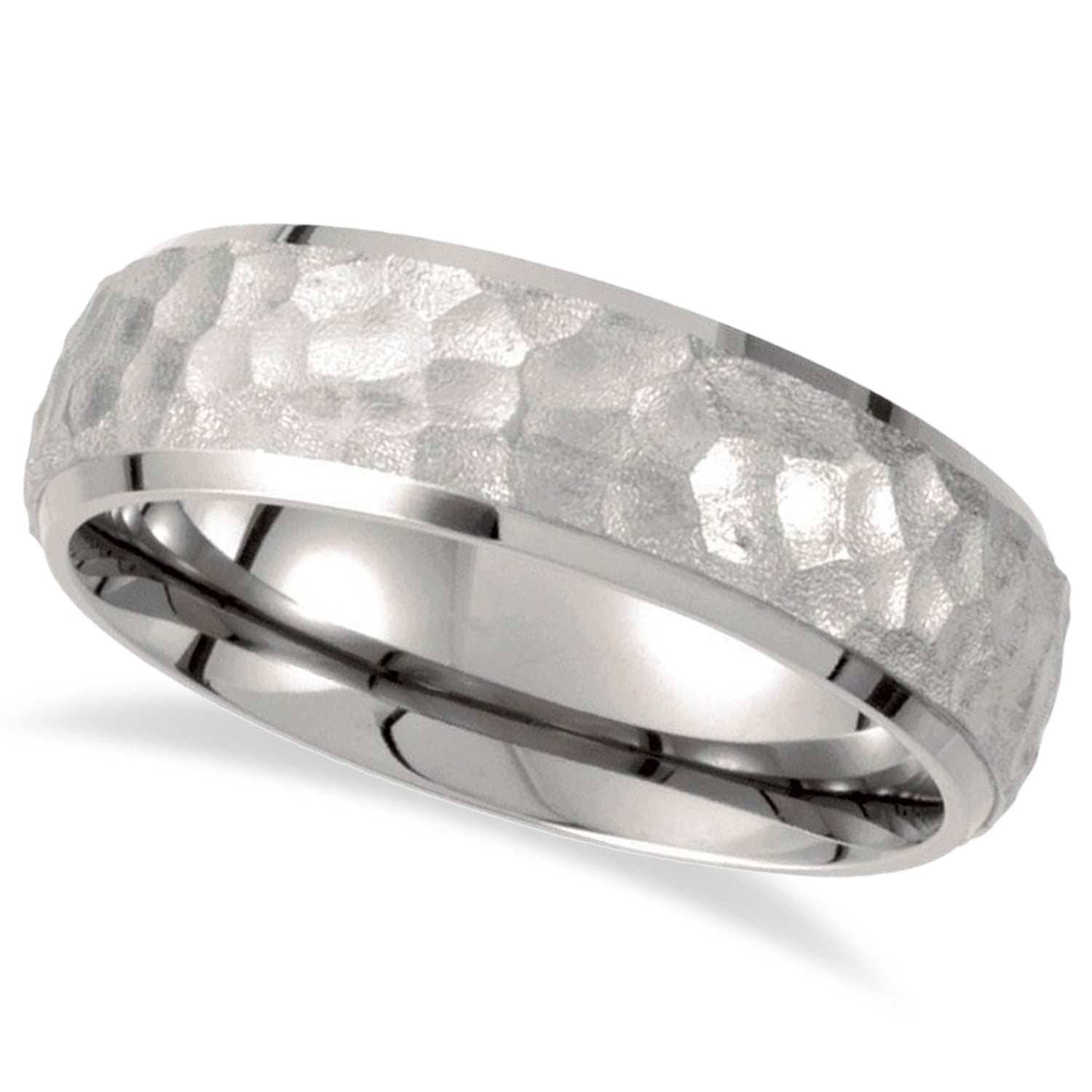 Men's Hammered Finish Wedding Ring Titanium with 18K Rose Gold Plated (7mm)