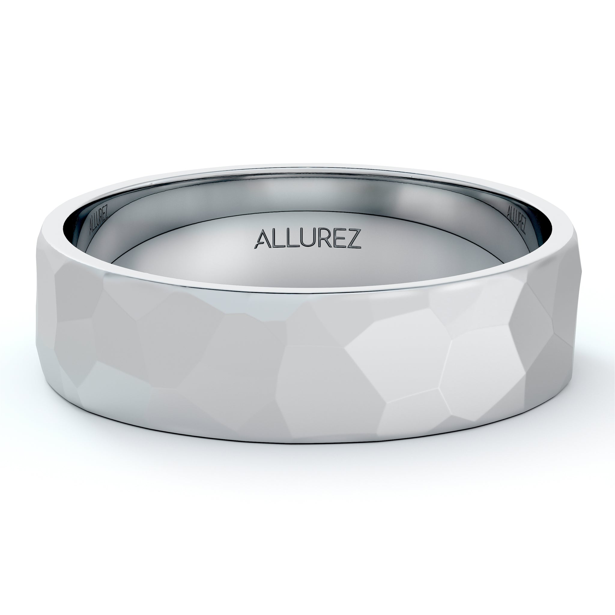 Men's Hammered Finished Carved Band Wedding Ring Platinum (5mm)