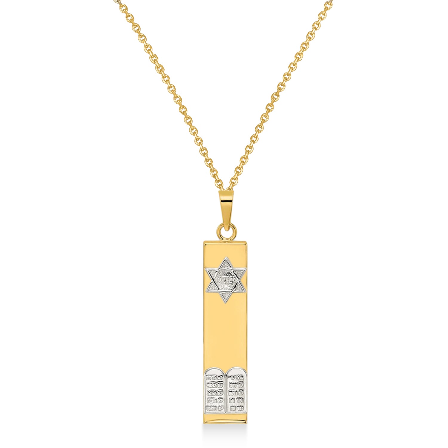 Mezuzah with Star of David & Torah Pendant Necklace 14K Two Tone Gold