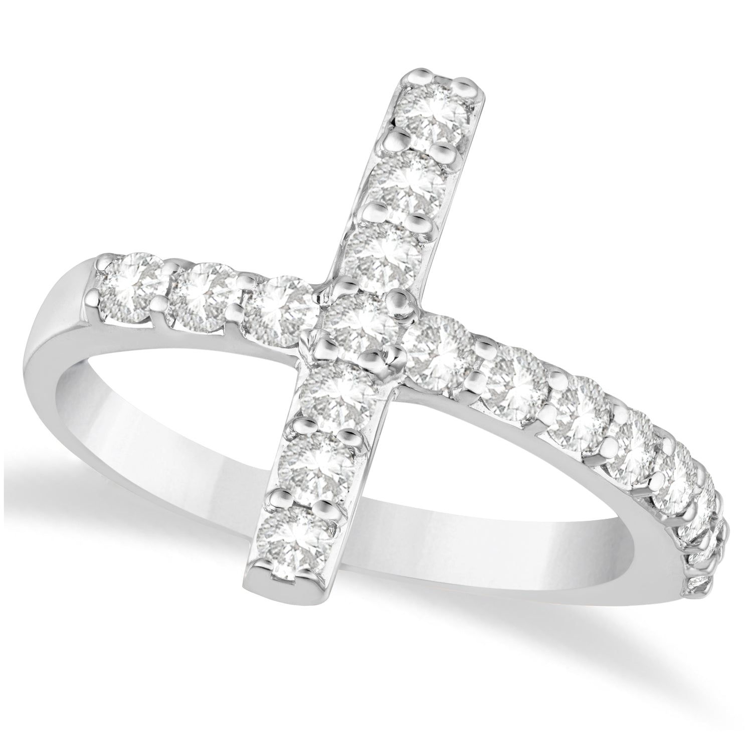 Modern Sideways Diamond Cross Fashion Ring 14k White Gold (0.75ct)