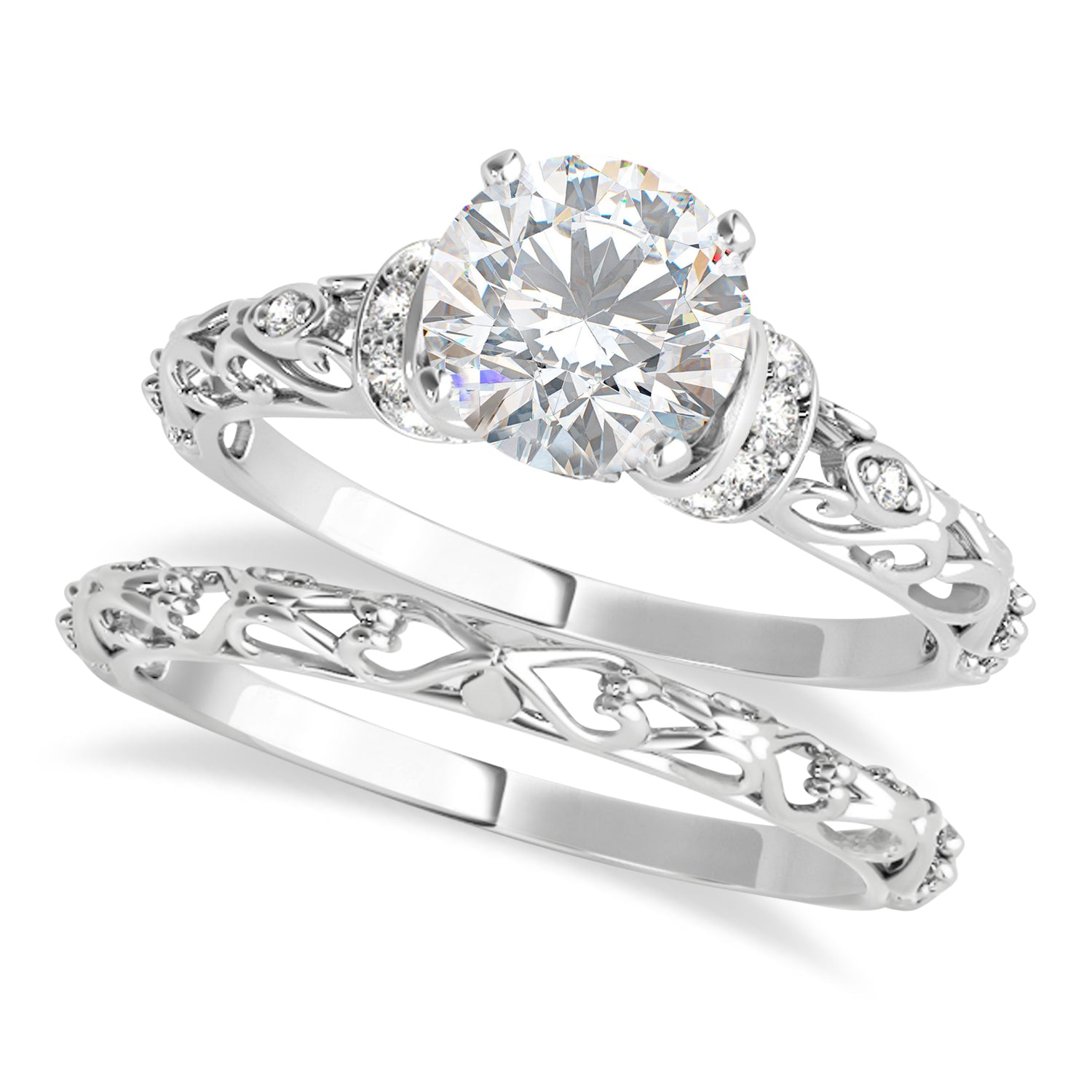Moissanite & Diamond Antique Style Bridal Set Platinum (1.12ct)