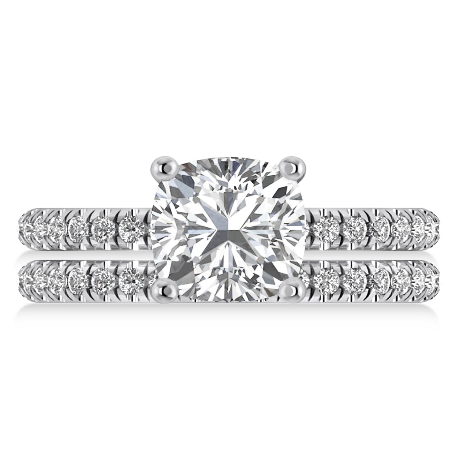 Moissanite & Diamond Cushion-Set Semi-Eternity Bridal Set 14K White Go