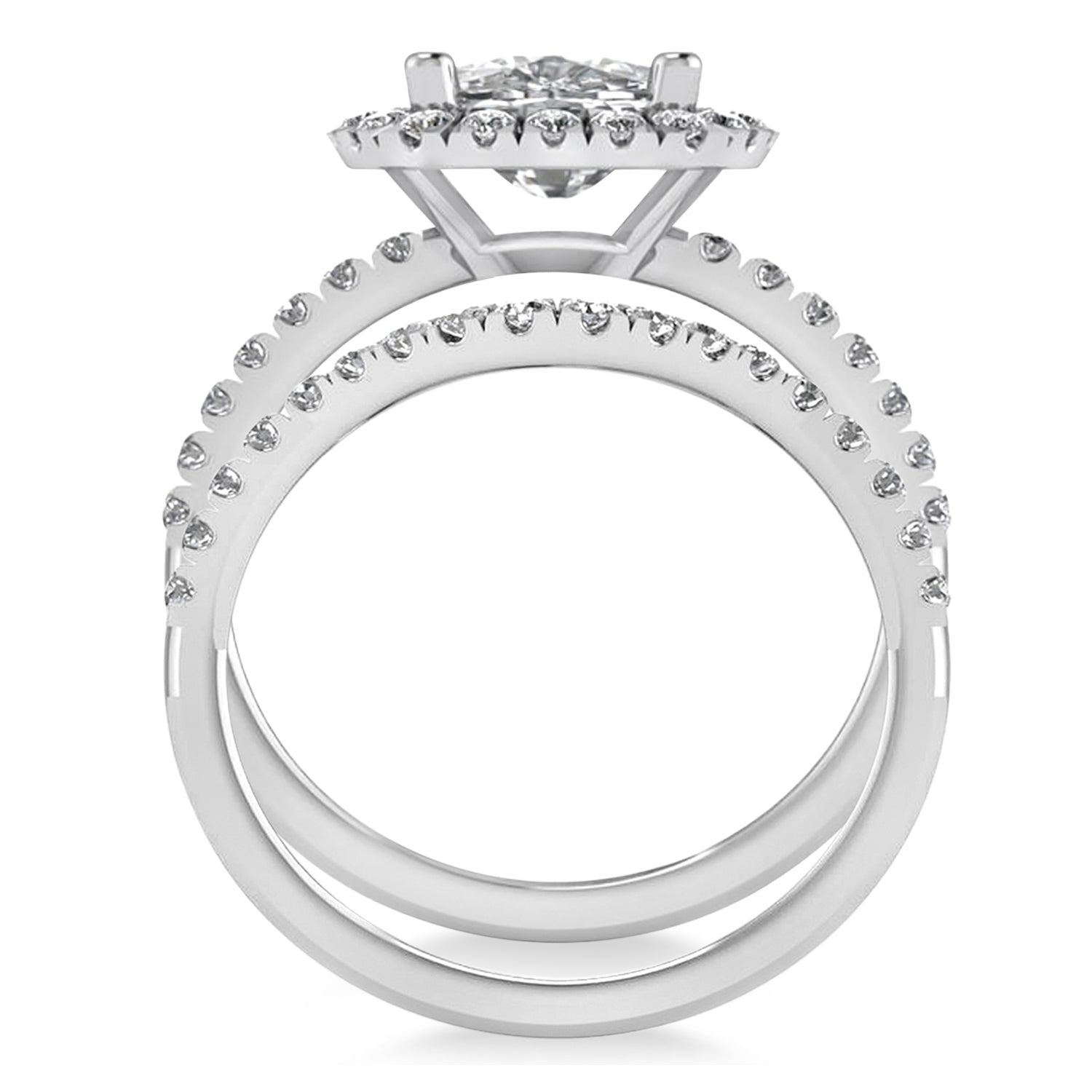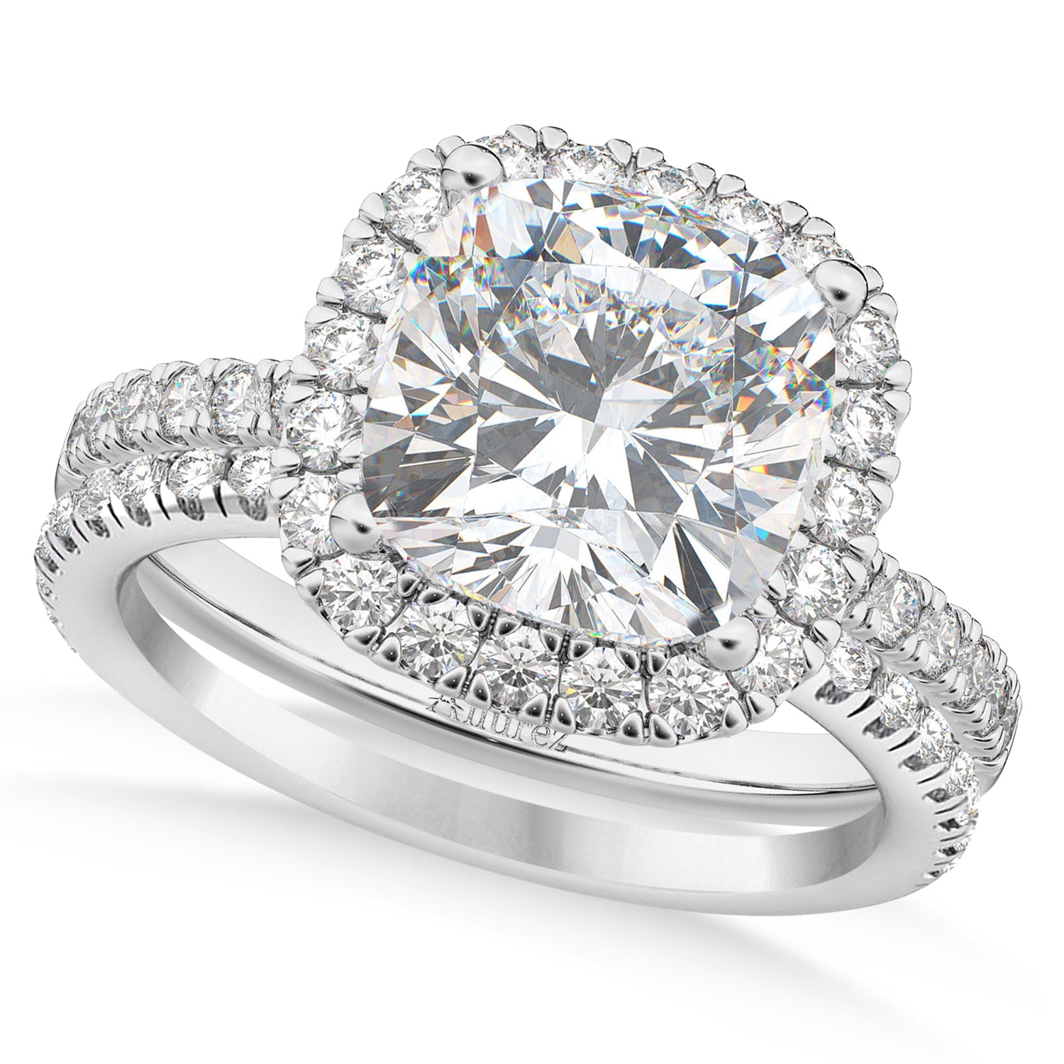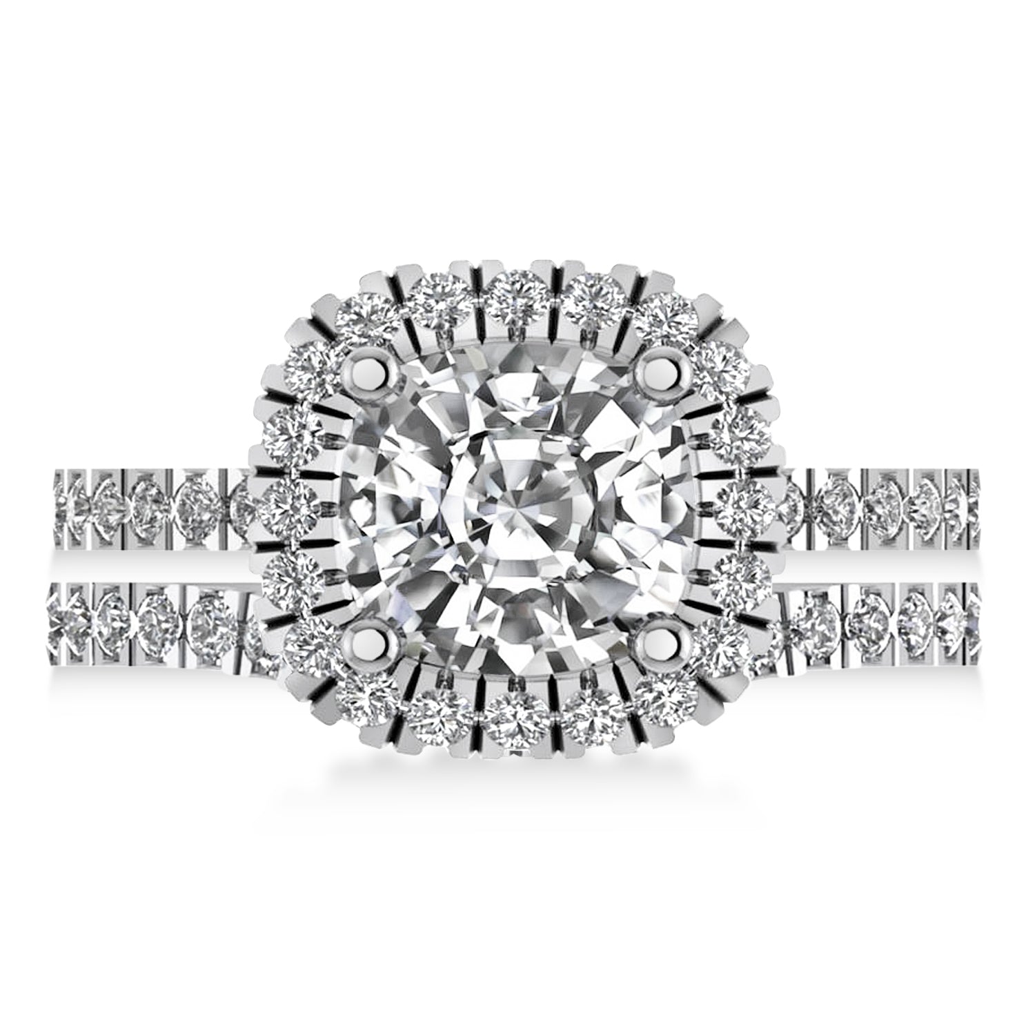 Moissanite & Diamonds Cushion-Cut Halo Bridal Set 14K White Gold (2.93