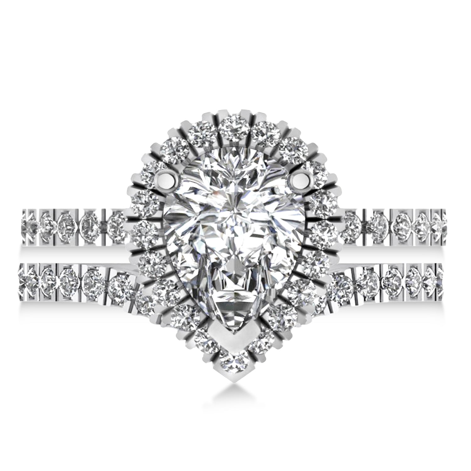Moissanite & Diamonds Pear-Cut Halo Bridal Set 14K White Gold (2.71ct)