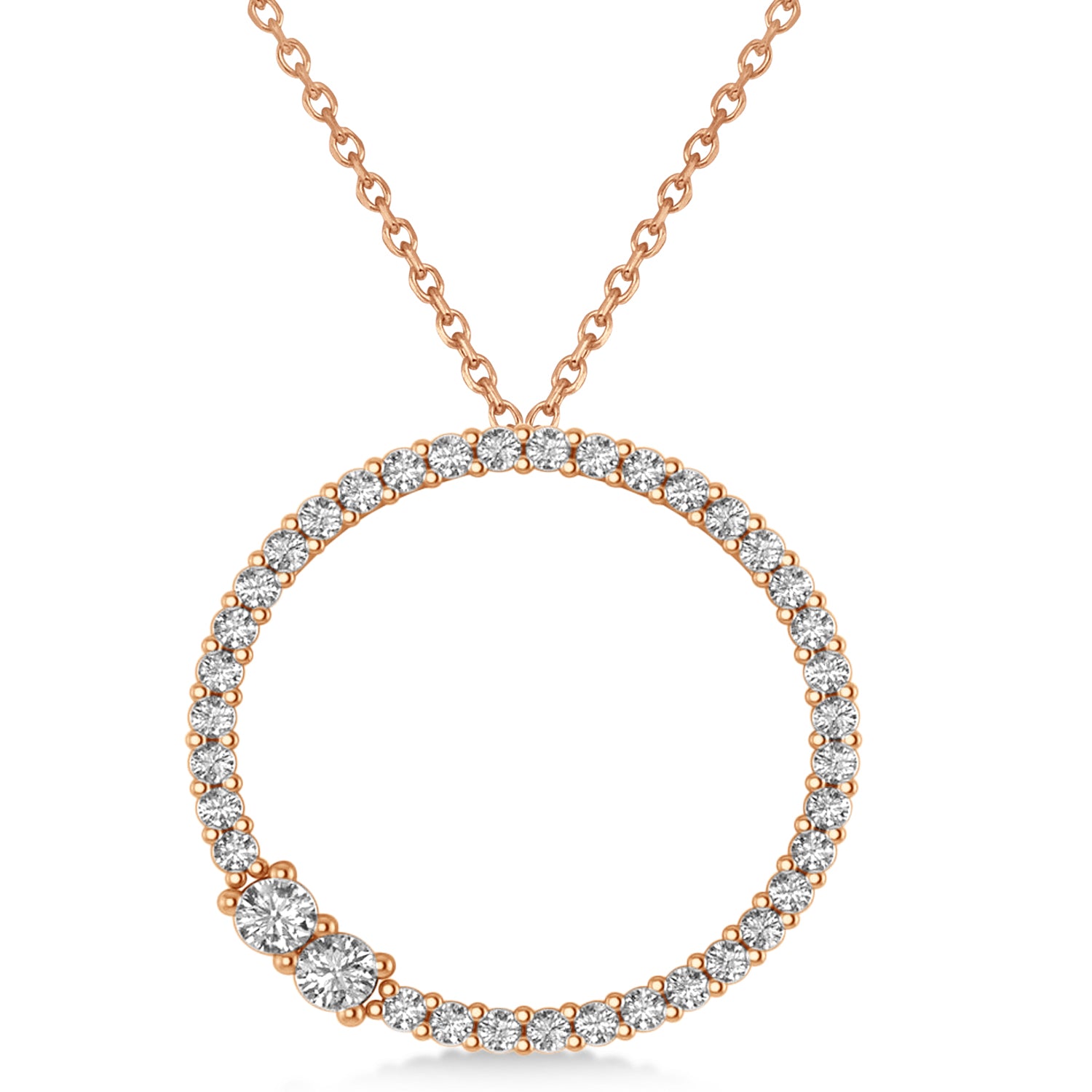 Thirty-eight moissanites of 0.46ct circle all the way around this stunning eternity 14k rose gold pendant necklace. A free matching gold cable chain is included with this gorgeous open circle of life pendant. The perfect complement to both dressy and everyday wear.