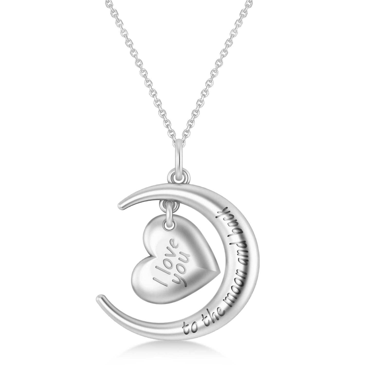 14K White Gold Heart and Moon Pendant Necklace Romantic 'I Love You to the Moon and Back