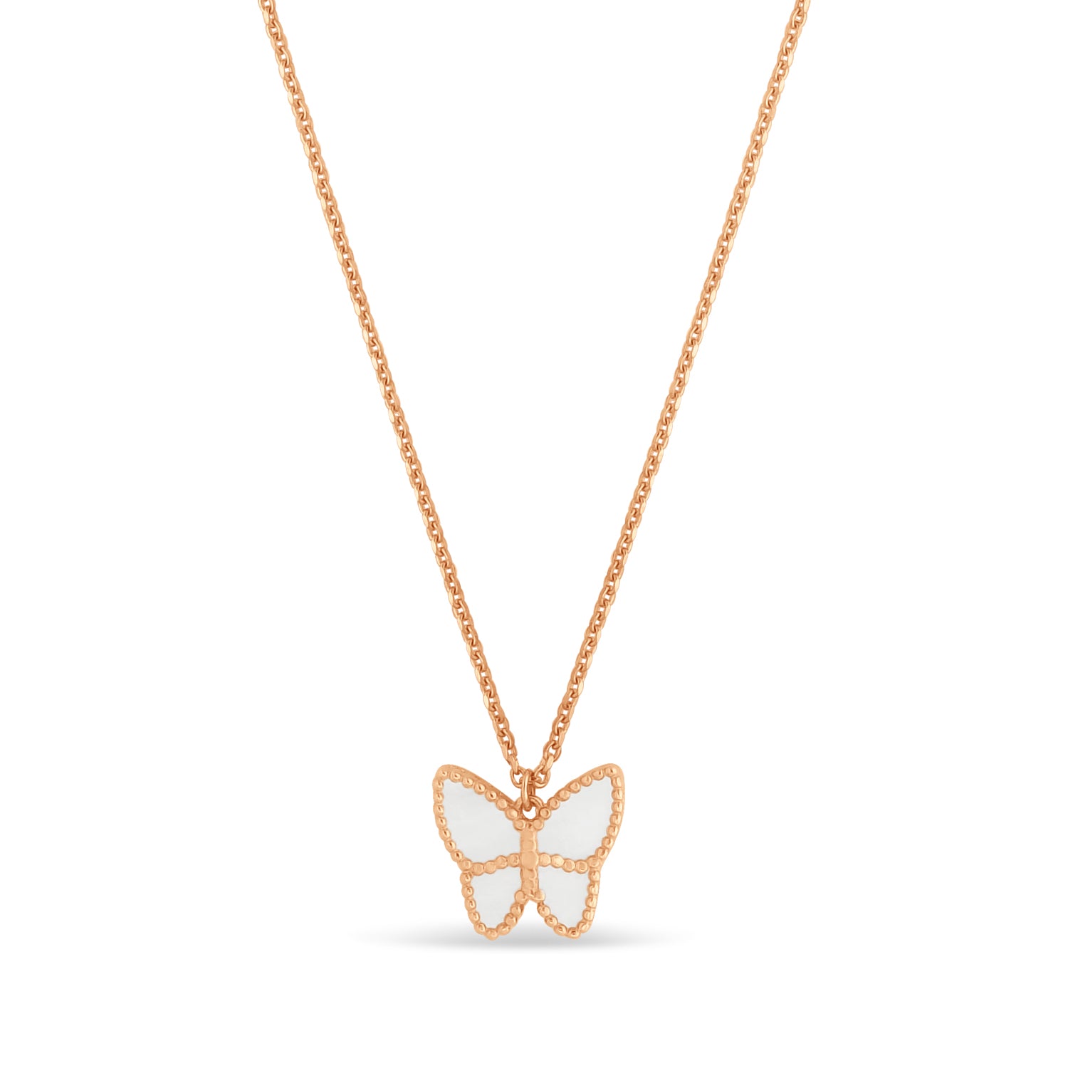 Mother of Pearl Butterfly Pendant Necklace 14k Rose Gold