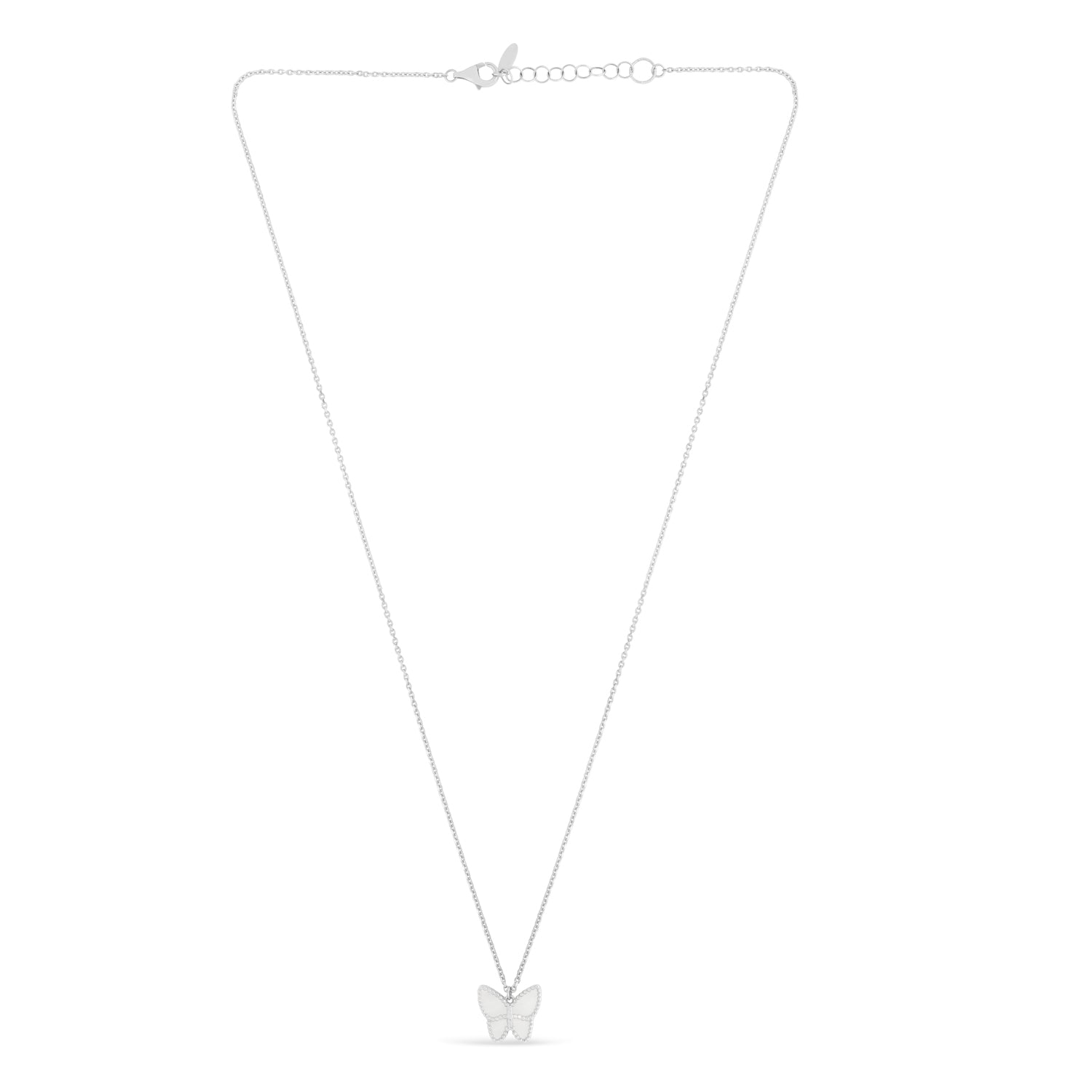 Mother of Pearl Butterfly Pendant Necklace 14k White Gold