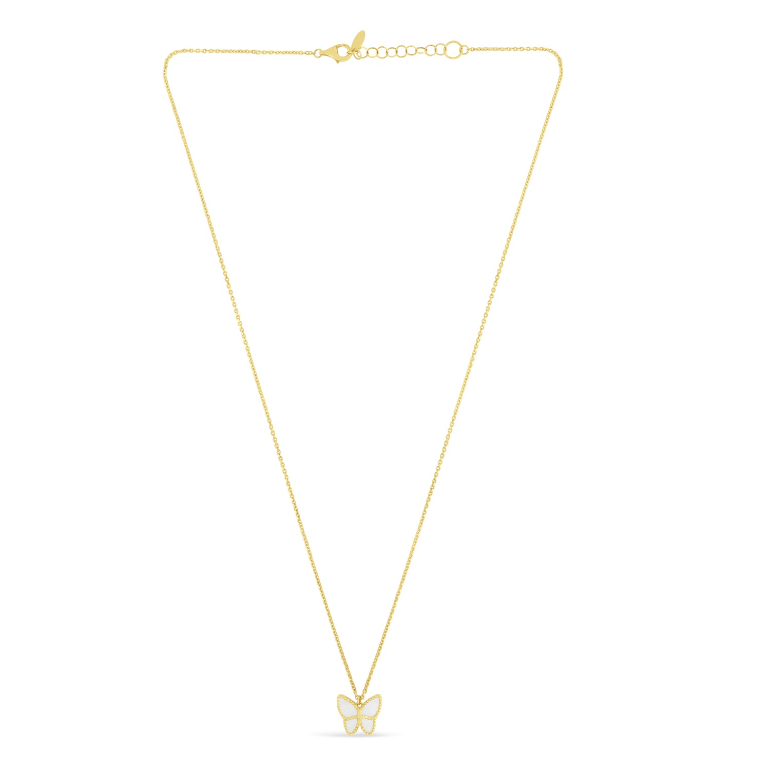 Mother of Pearl Butterfly Pendant Necklace 14k Yellow Gold