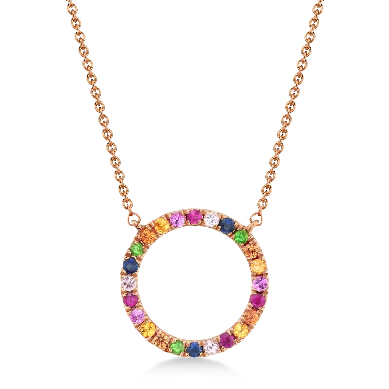 Multi-Colored Circle Gemstone Pendant in 14K Rose Gold necklace (0.29ct)