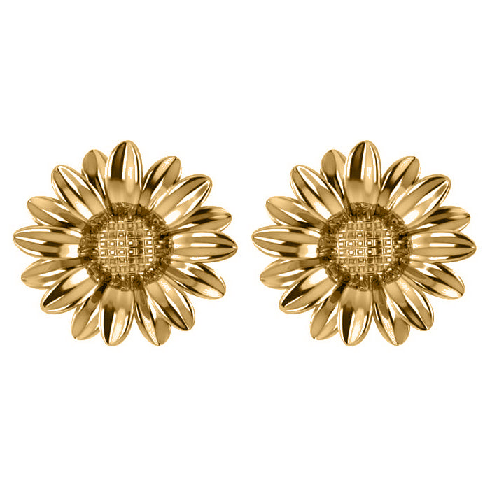 Multilayered Daisy Flower Stud Earrings 14K Yellow Gold