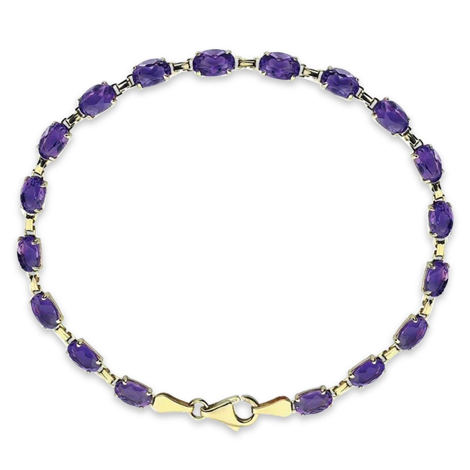 Elevate your style with our Natural Amethyst Bracelet, expertly crafted in luxurious 14K yellow gold. Each stunning amethyst gemstone emanates a rich purple hue, symbolizing wisdom and clarity. With its timeless design and vibrant color, this bracelet effortlessly adds a touch of elegance to any outfit, making it a must-have accessory for those who appreciate both beauty and meaning