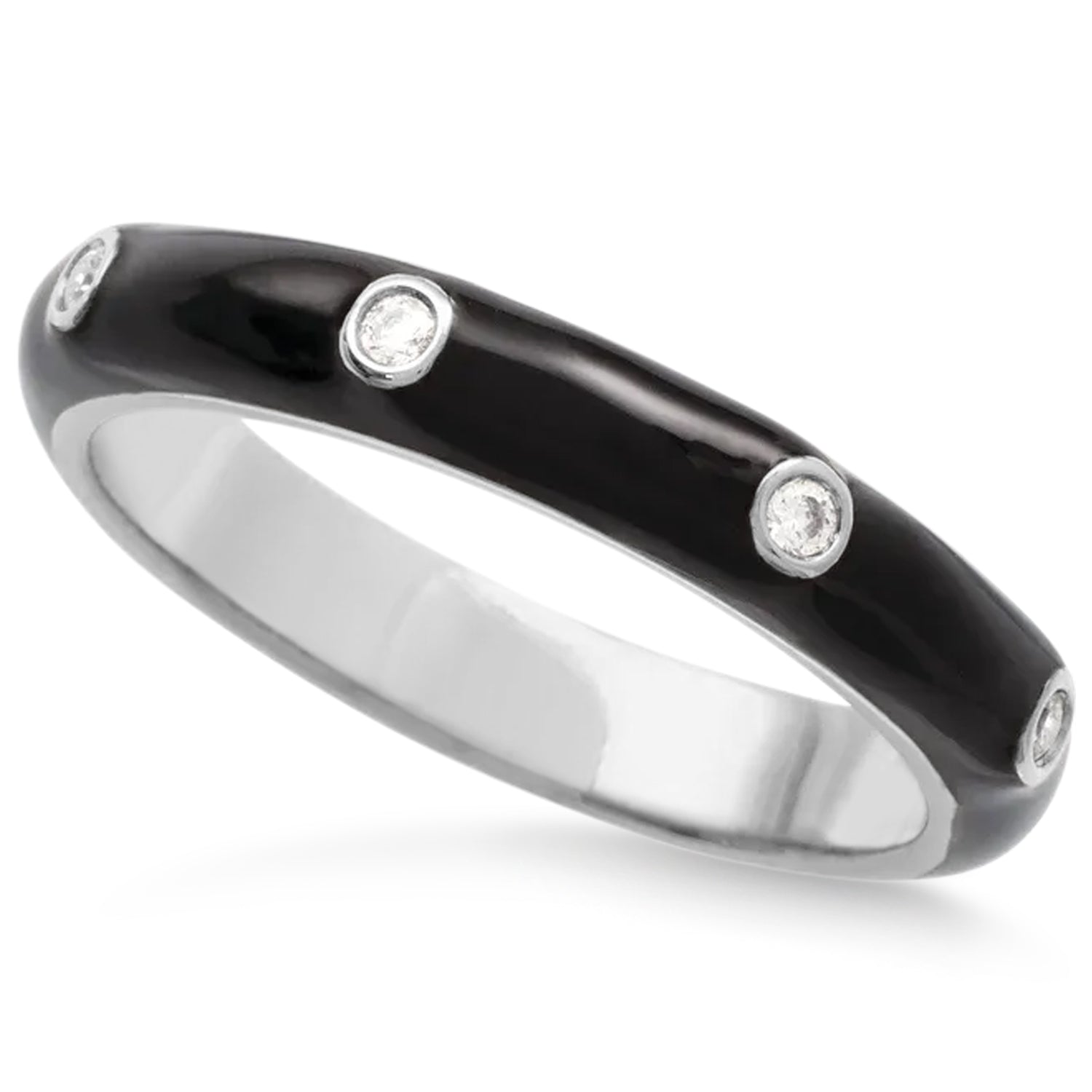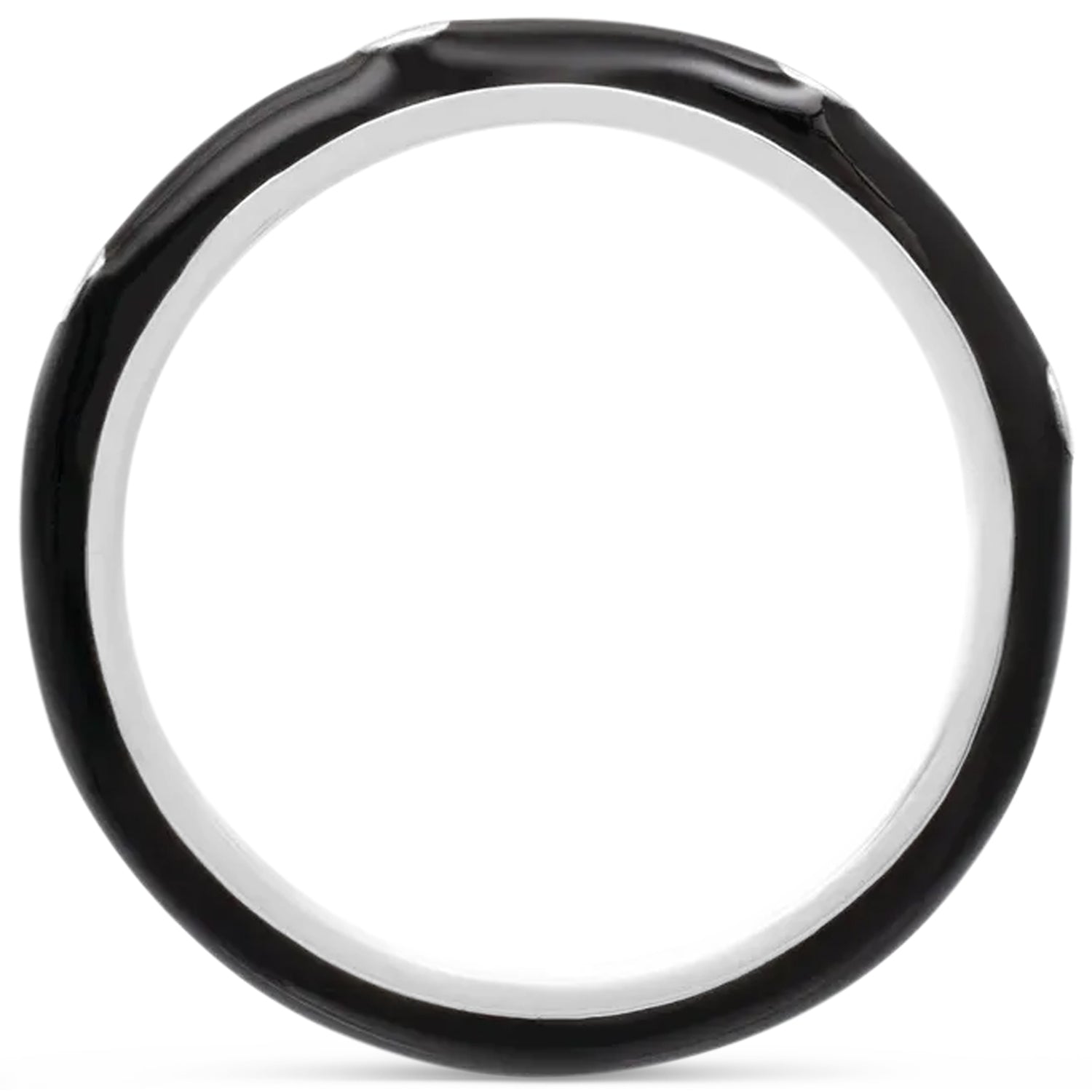 Discover the allure of this sophisticated ring, featuring natural diamonds and striking black enamel. Made from 14K white gold, this piece highlights a 0.05ct diamond, blending contemporary elegance with classic charm. Perfect for any event, this ring adds a refined touch to your wardrobe. Its versatile design makes it a great gift choice for a loved one. Wear it alone or stack with other rings for a personalized look