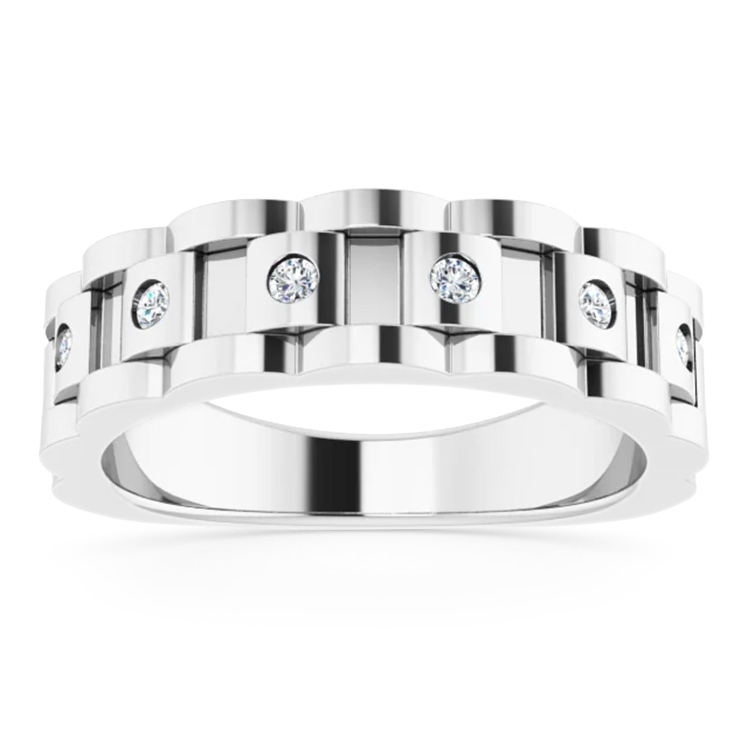 Natural Diamond Chain Link Ring 14K White Gold (0.25ct)
