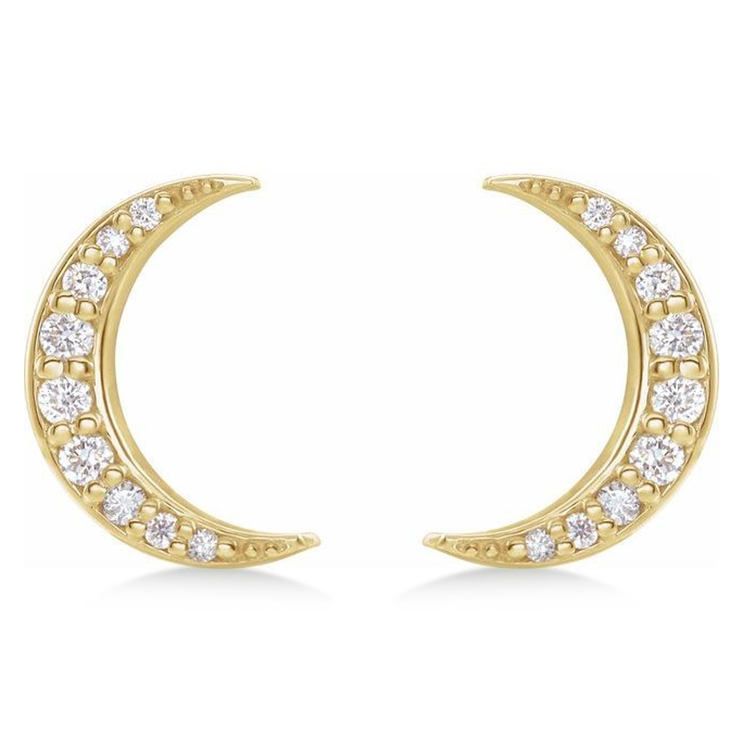 Natural Diamond Crescent Moon Stud Earings 14K Yellow Gold (0.1ct)