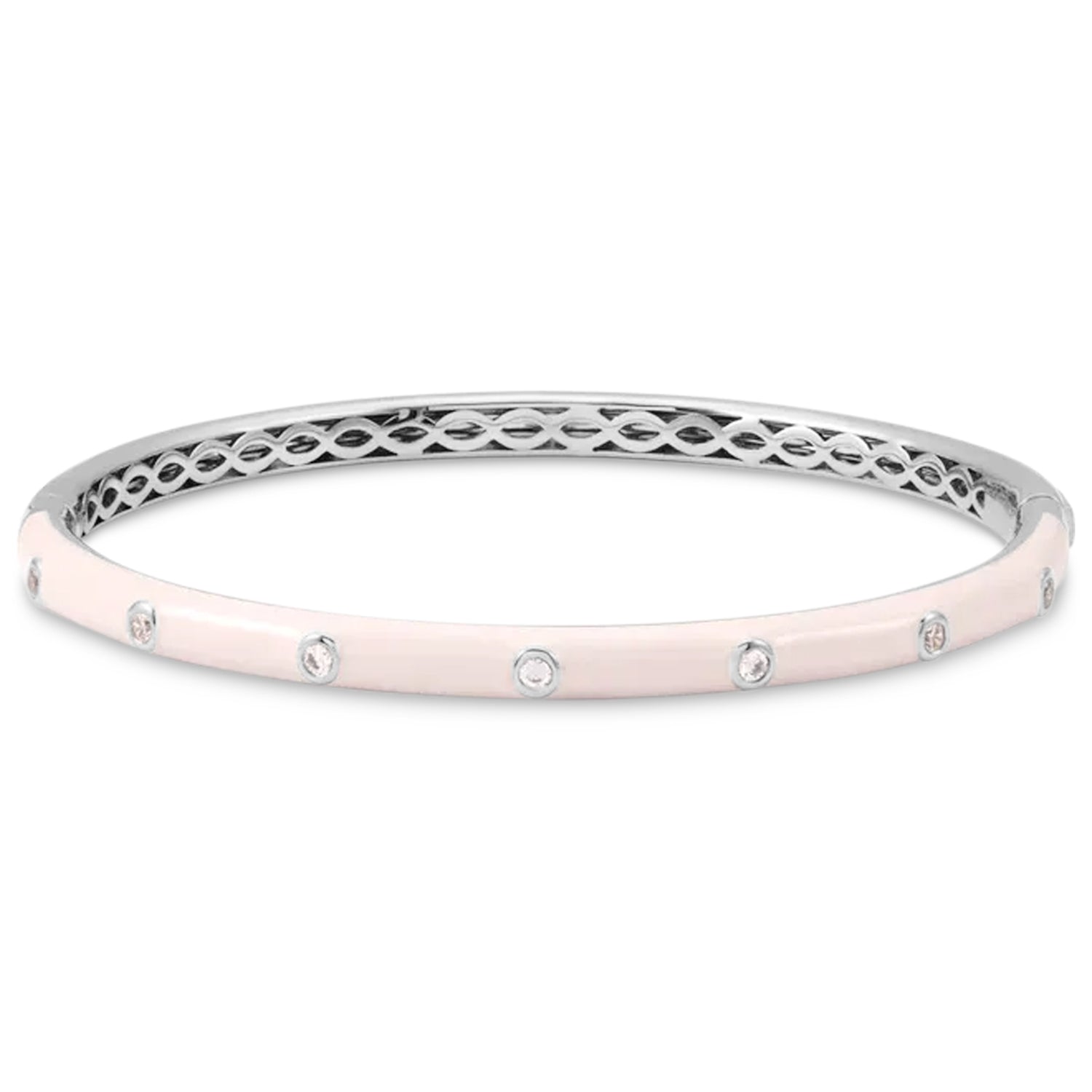 Natural Diamond & Pink Enamel Bangle Bracelet 14K White Gold (0.20ct)