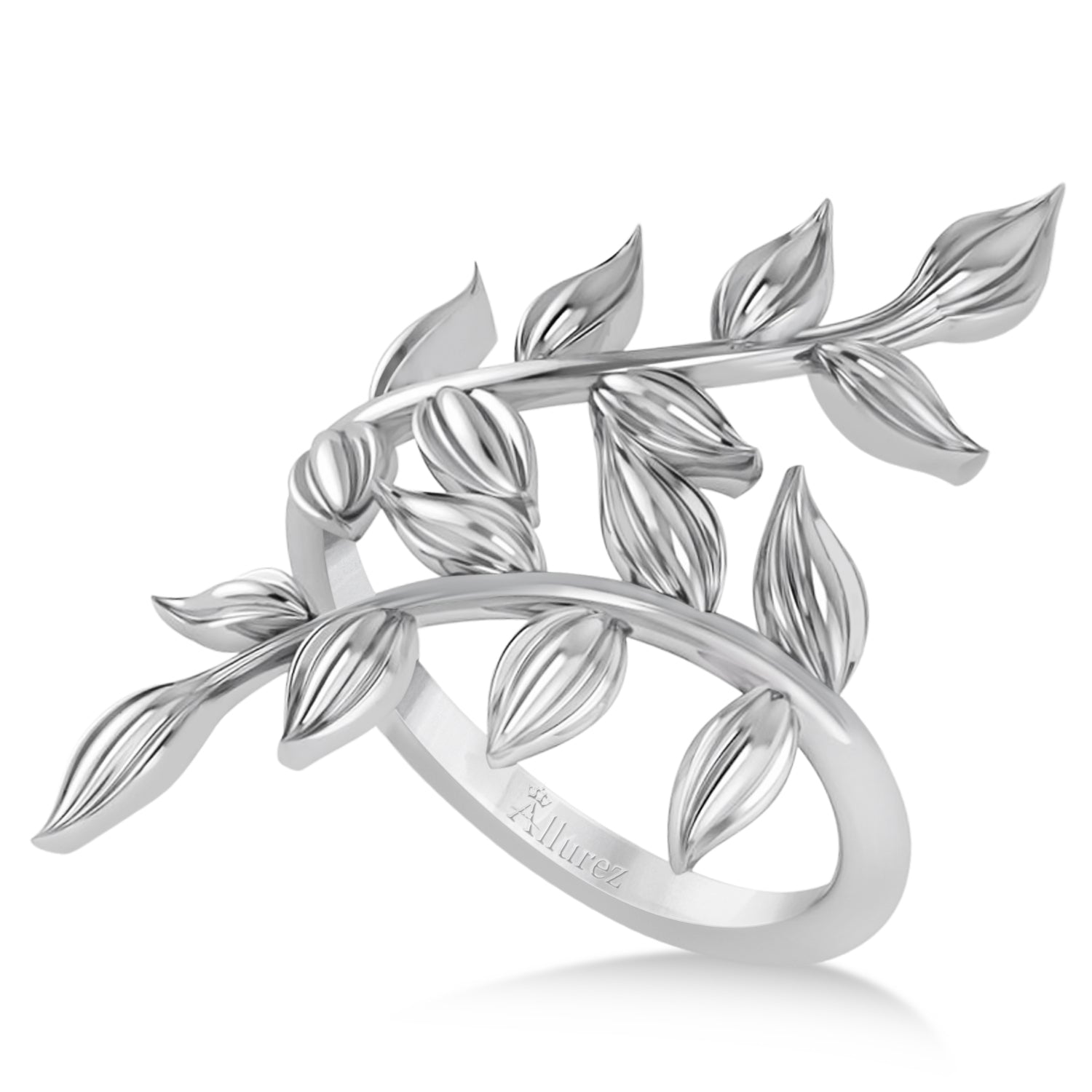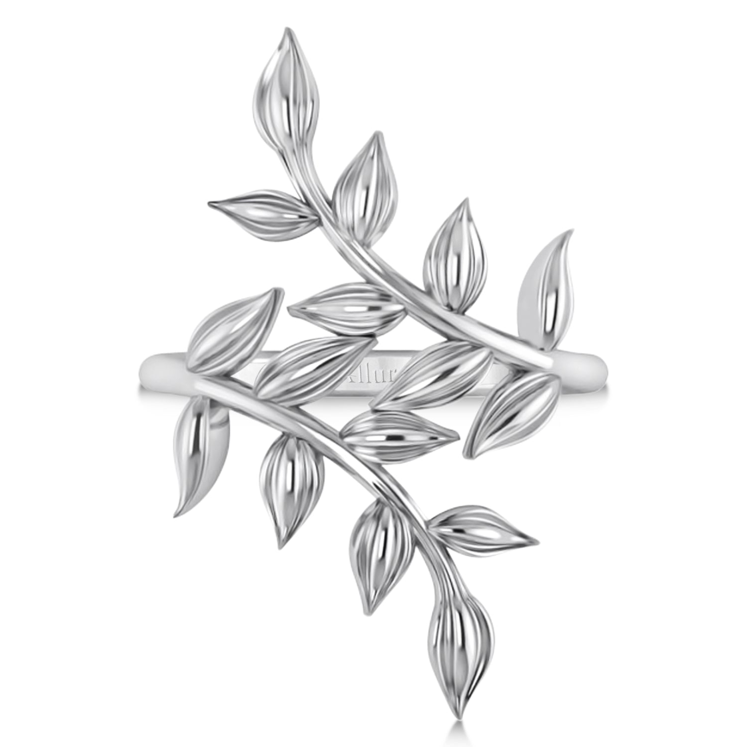 Olive Leaf Vine Plain Metal Fashion Ring 14k White Gold