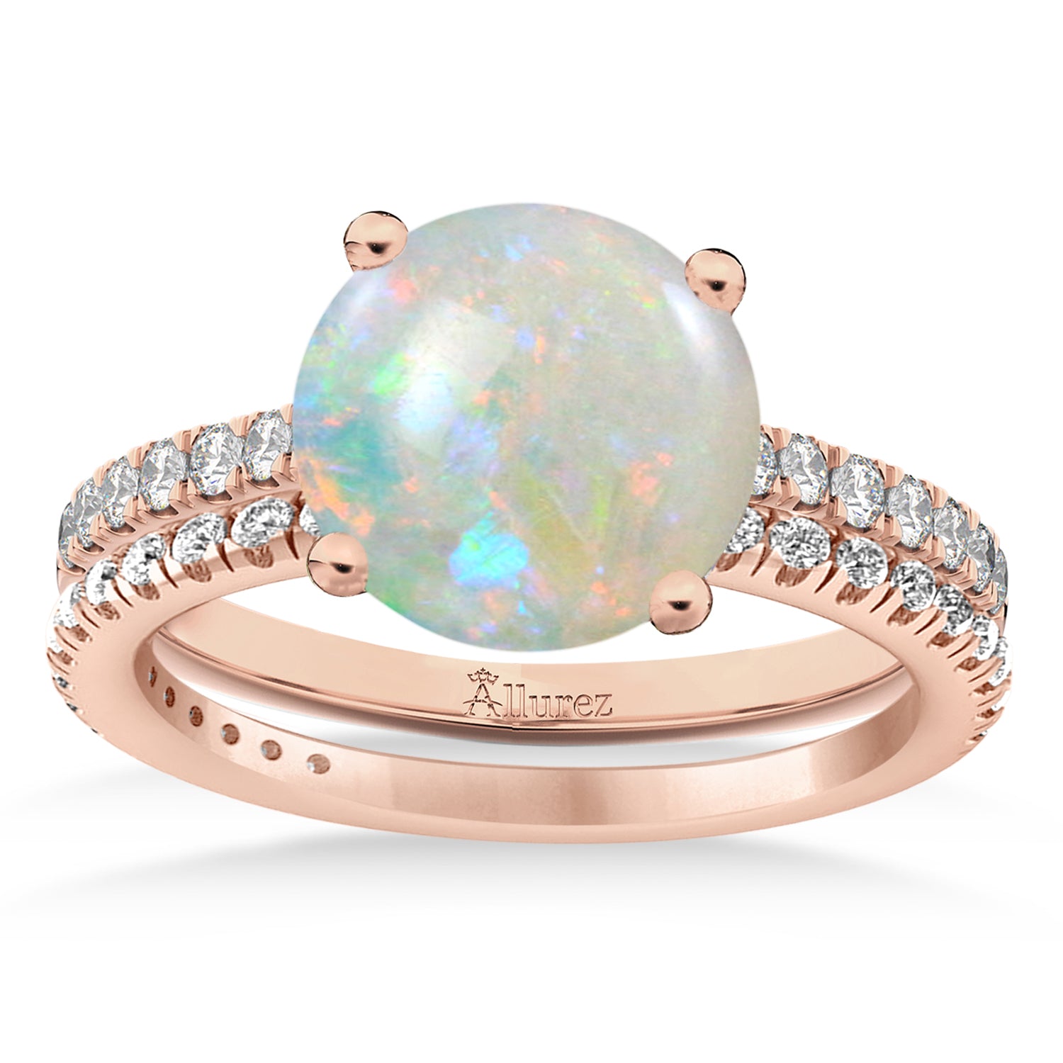 Opal & Diamond Round-Set Semi-Eternity Bridal Set 18k Rose Gold (1.92ct)
