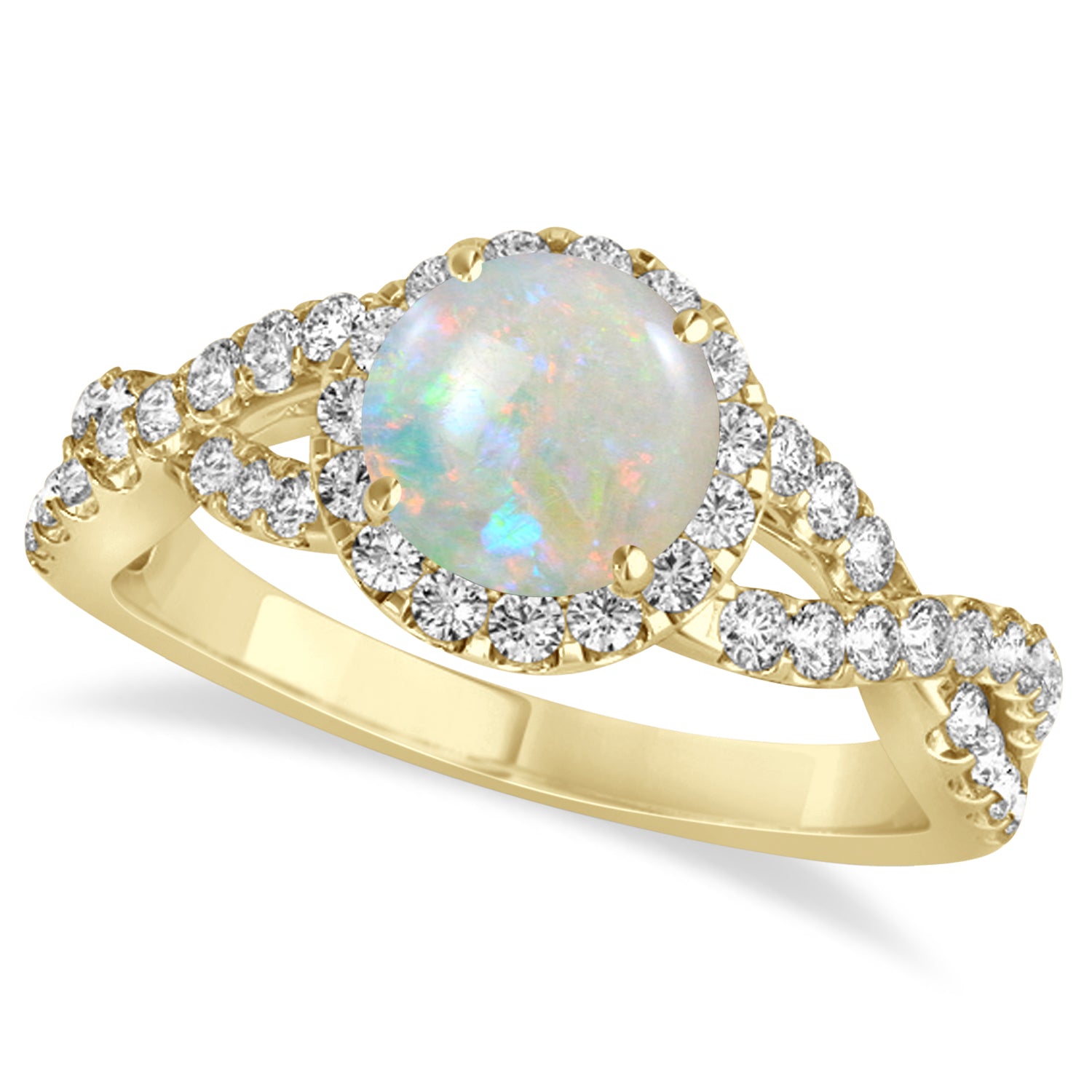 Opal & Diamond Twisted Engagement Ring 18k Yellow Gold 1.07ct
