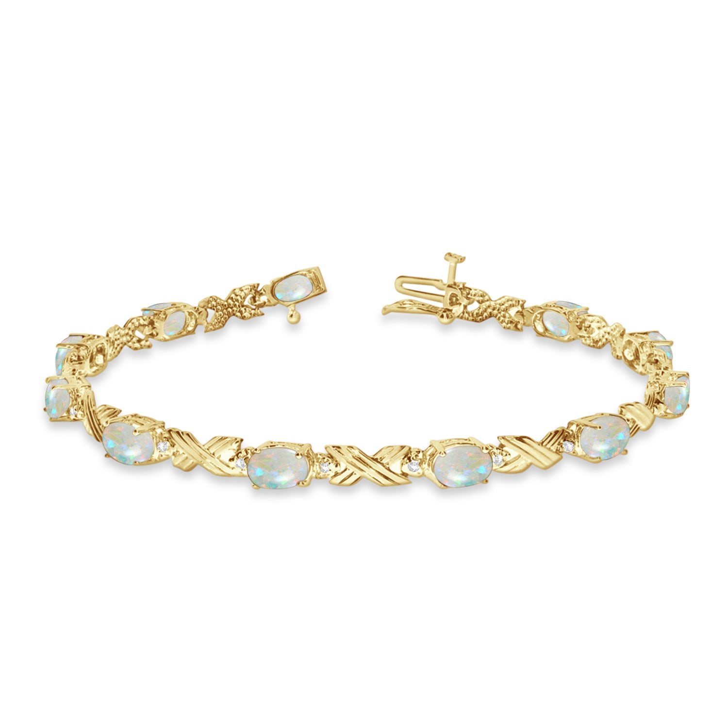 Opal & Diamond XOXO Link Bracelet 14k Yellow Gold (6.65ct)
