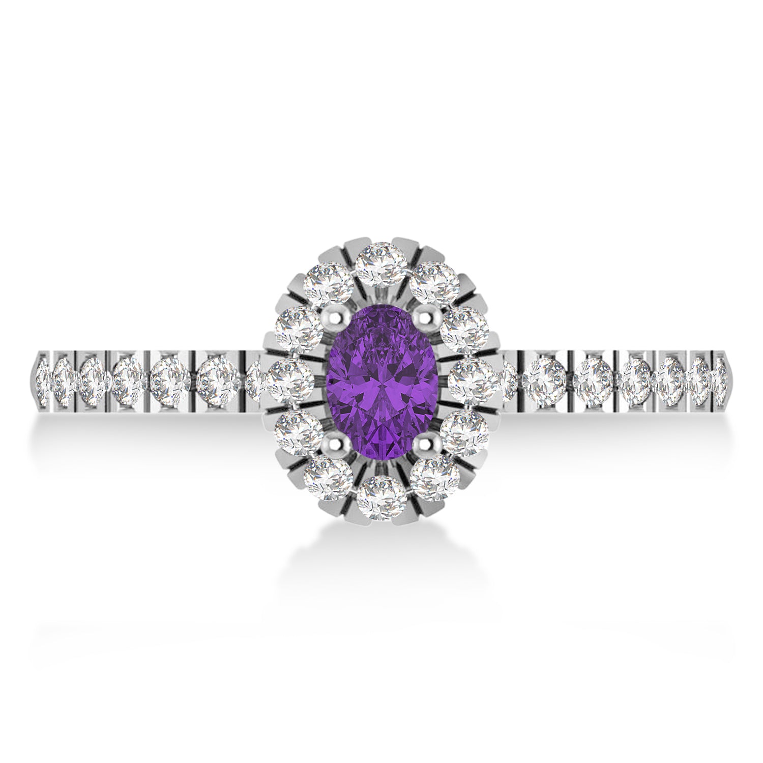 Oval Amethyst & Diamond Halo Engagement Ring 14k White Gold (0.60ct)