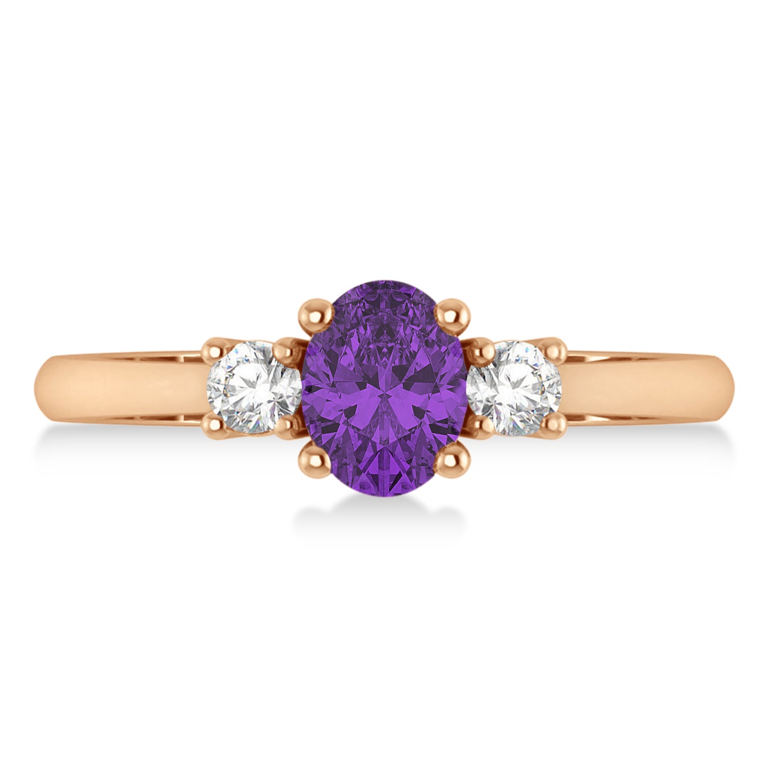 Oval Amethyst & Diamond Three-Stone Engagement Ring 14k Rose Gold (1.2