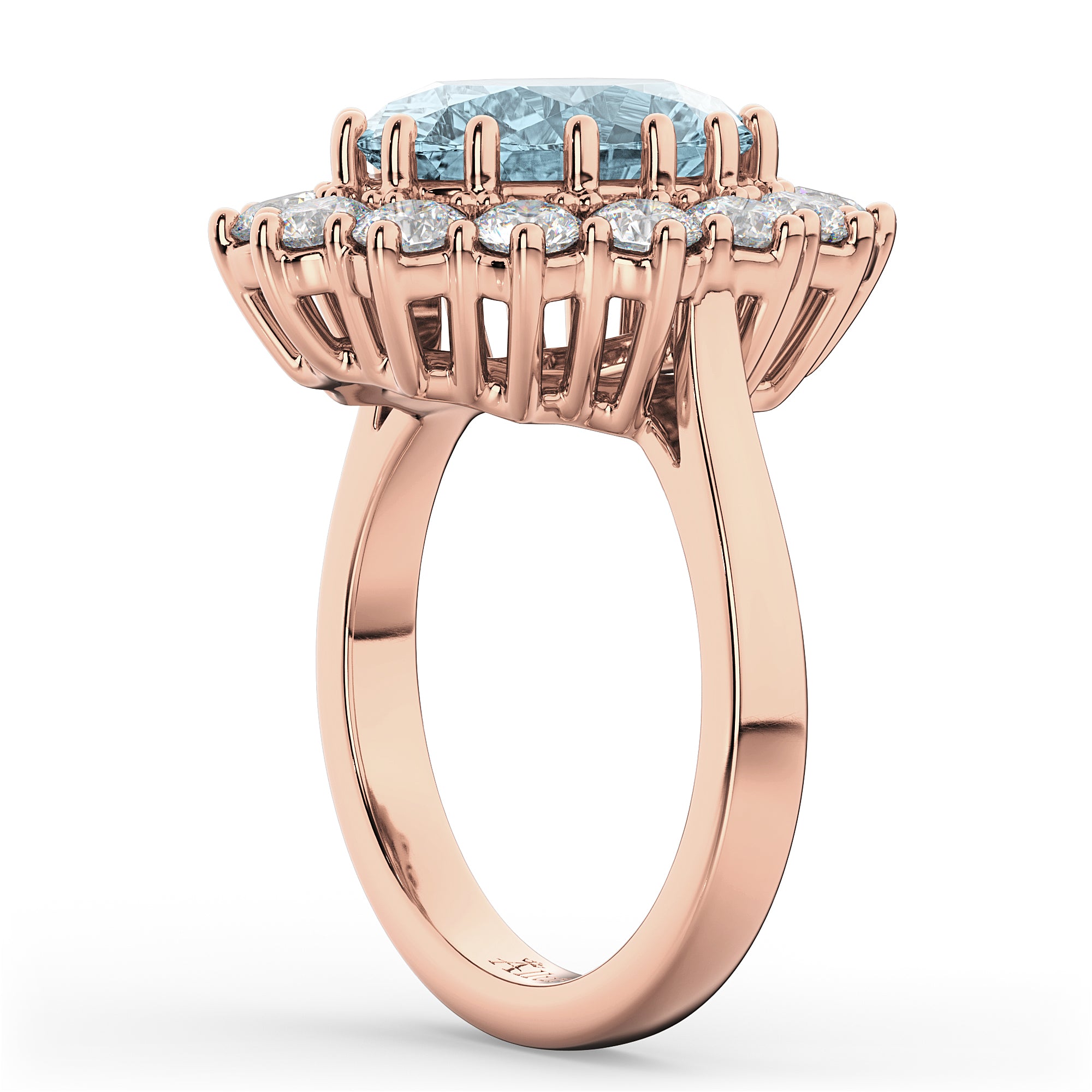 Oval Aquamarine & Diamond Halo Lady Di Ring 18k Rose Gold (6.40ct)
