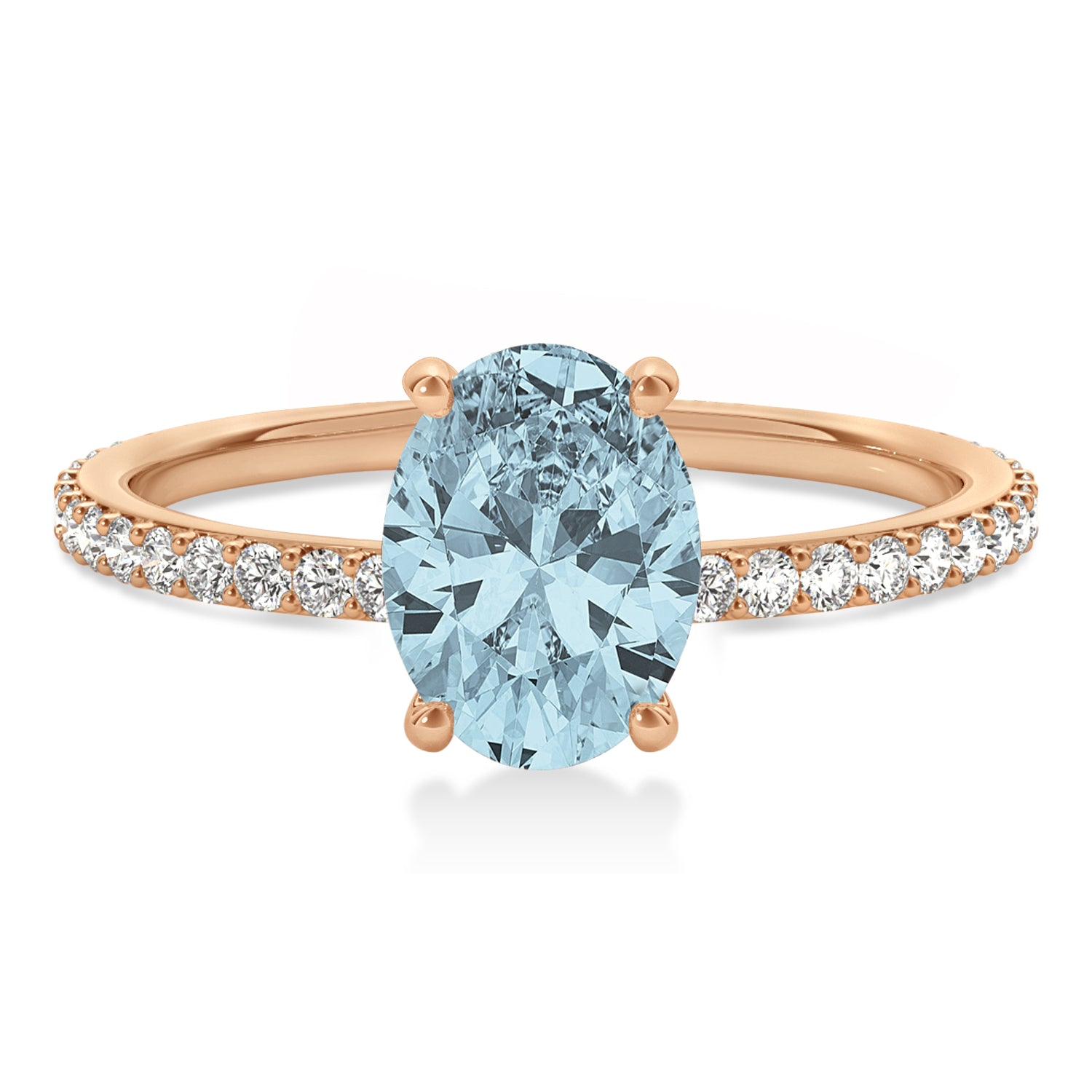 Oval Aquamarine & Diamond Hidden Halo Engagement Ring 18k Rose Gold (0