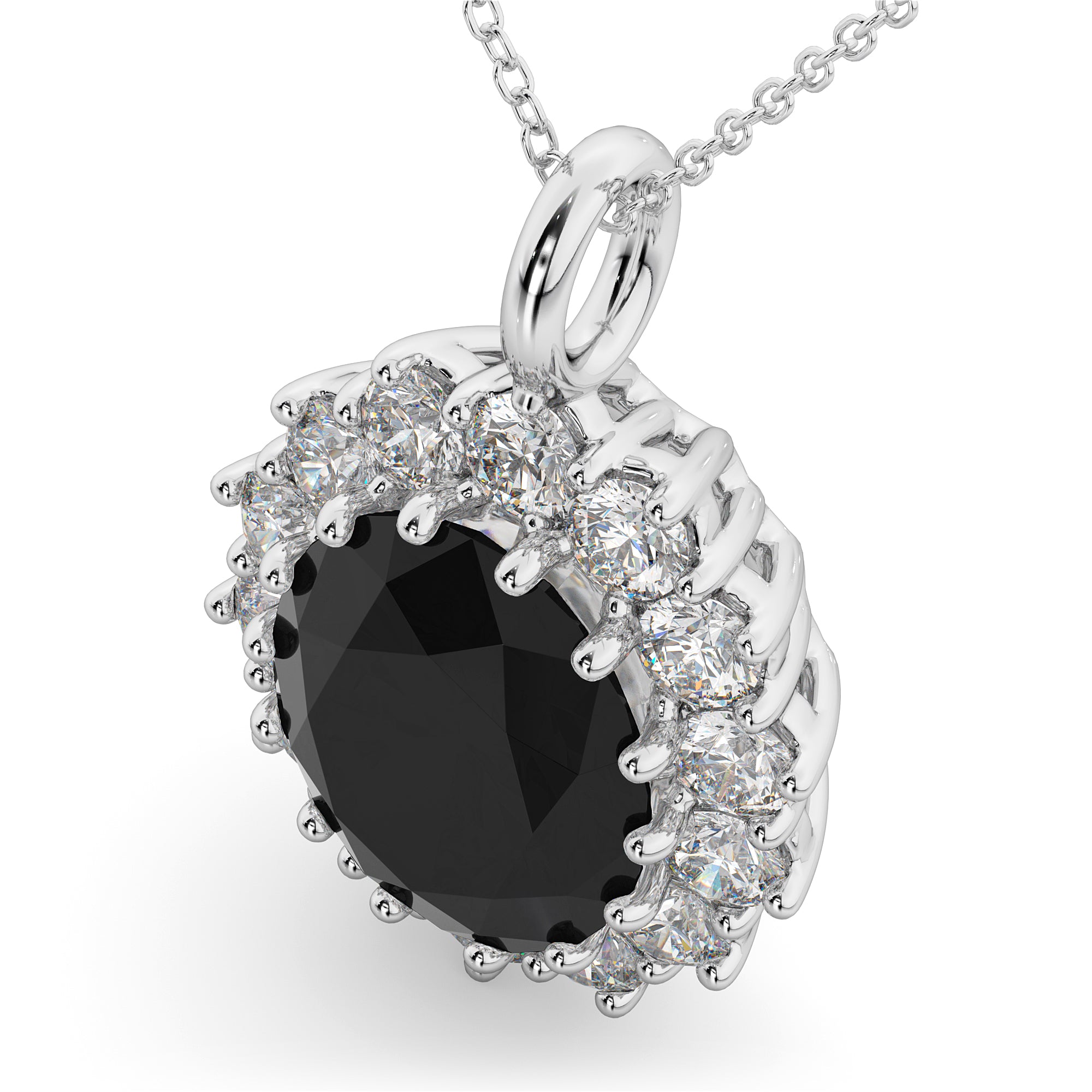 Oval Black Diamond & Diamond Halo Pendant Necklace 14k White Gold (6.40ct)