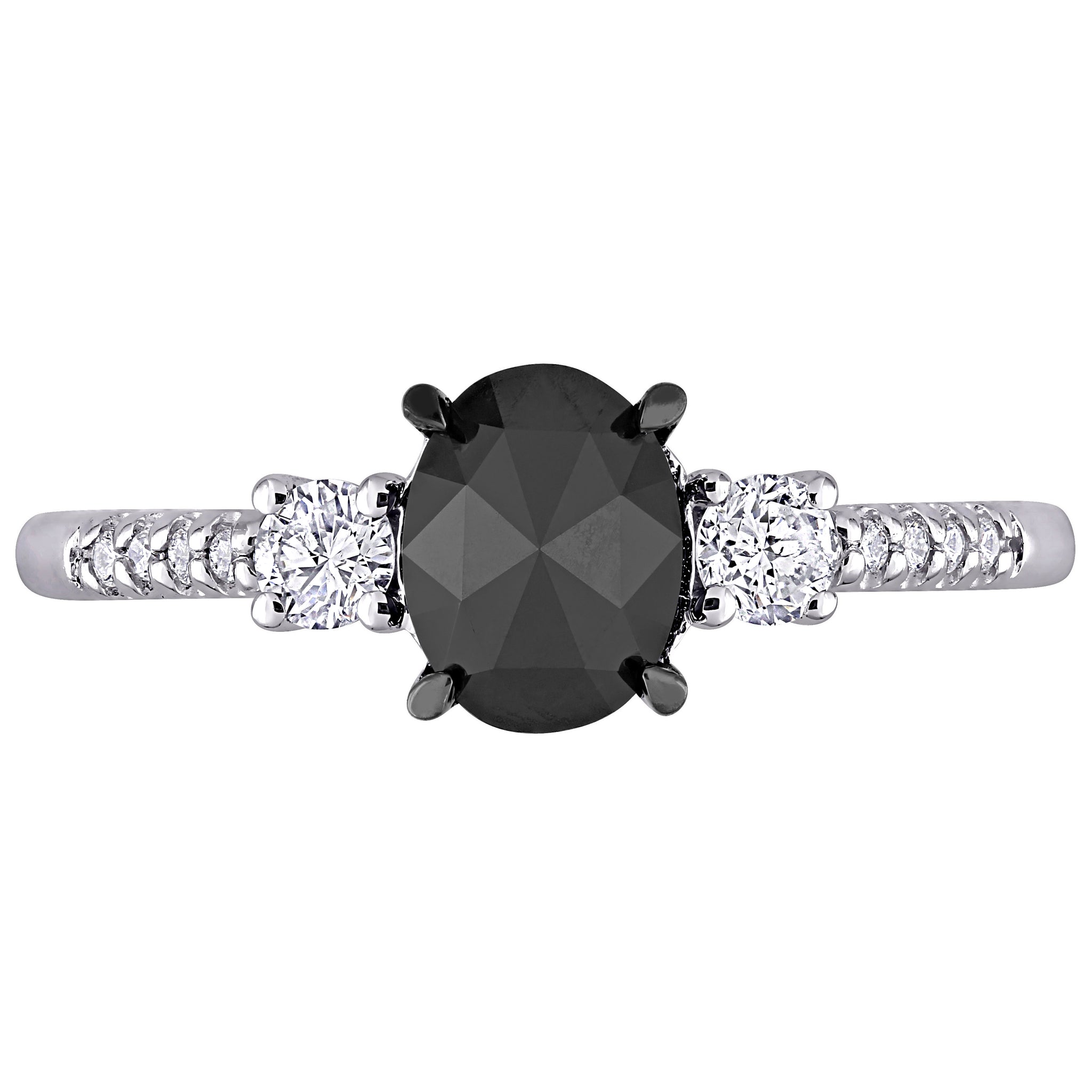 Oval Black & Round White Diamond Three-Stone Ring 14k W. Gold (1.20ct)