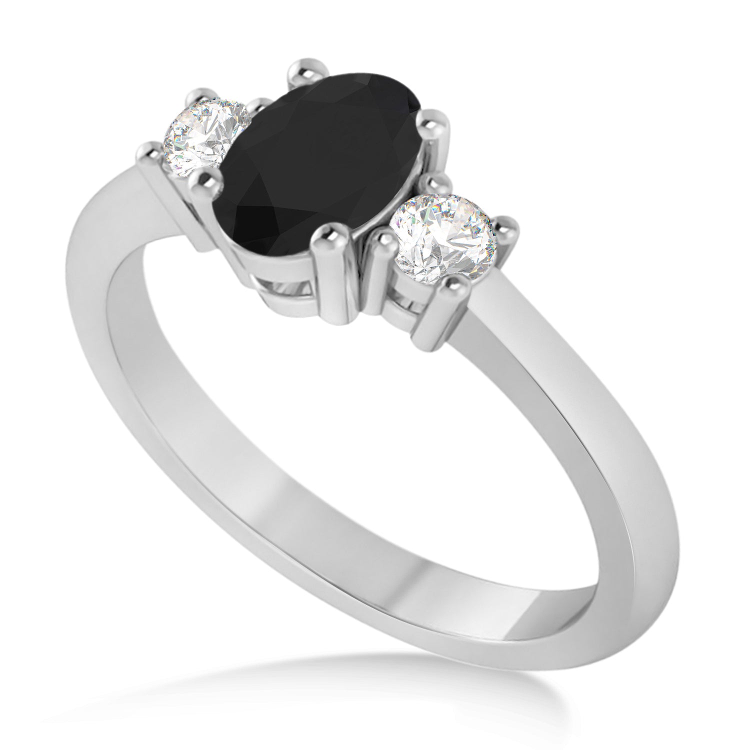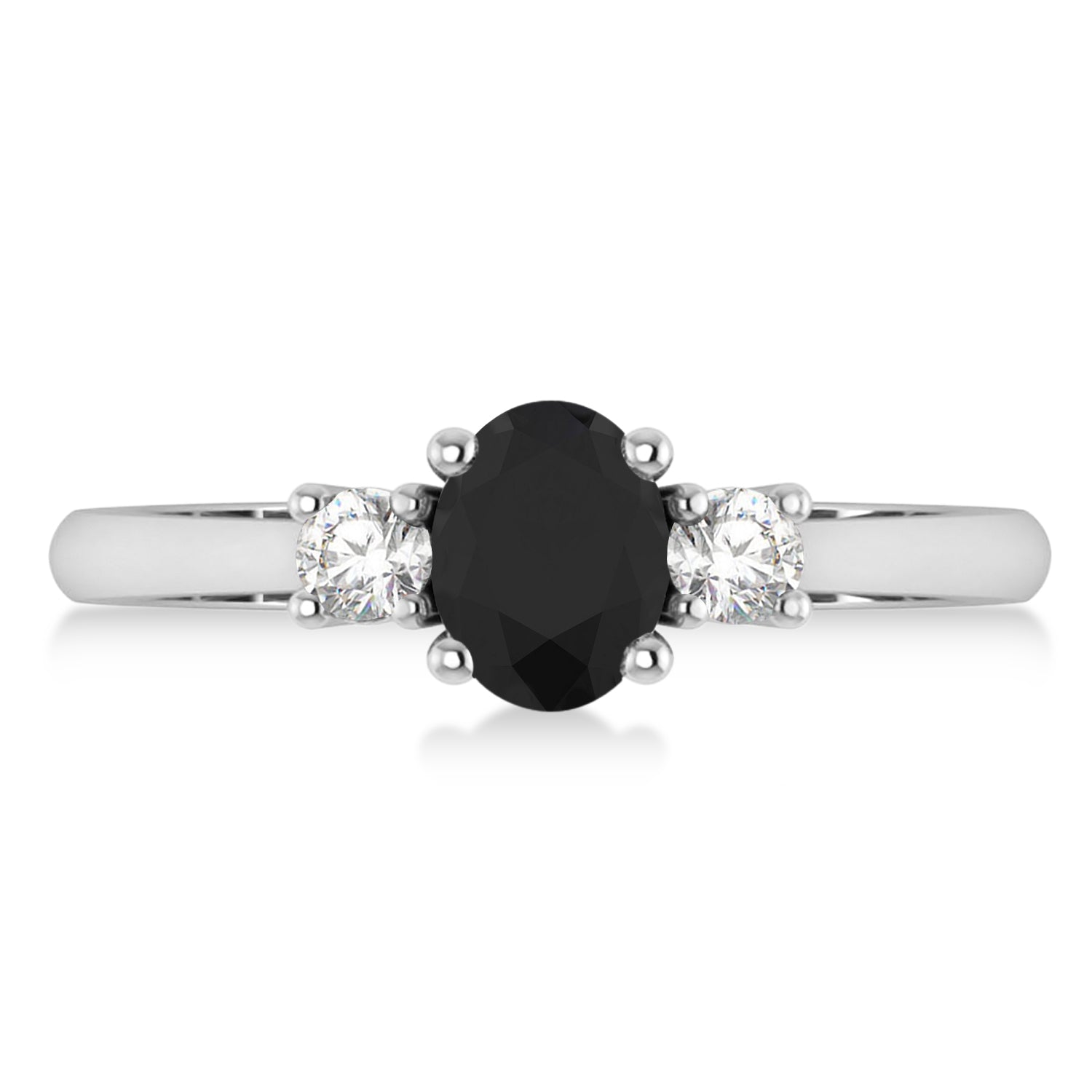 Oval Black & White Diamond Three-Stone Engagement Ring 14k White Gold (1.20ct)