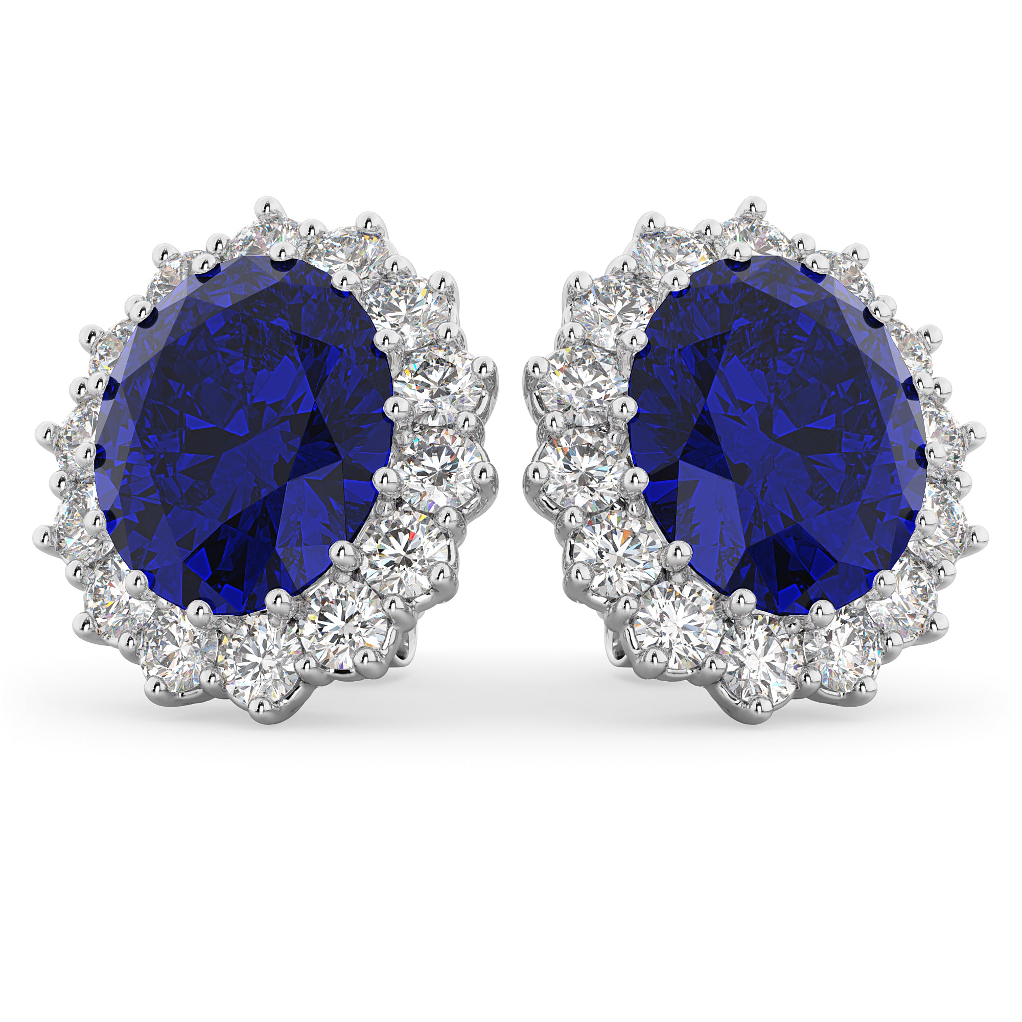 Oval Blue Sapphire & Diamond Accented Earrings 14k White Gold (10.80ctw)