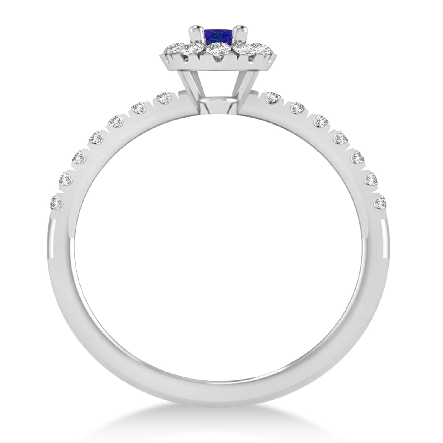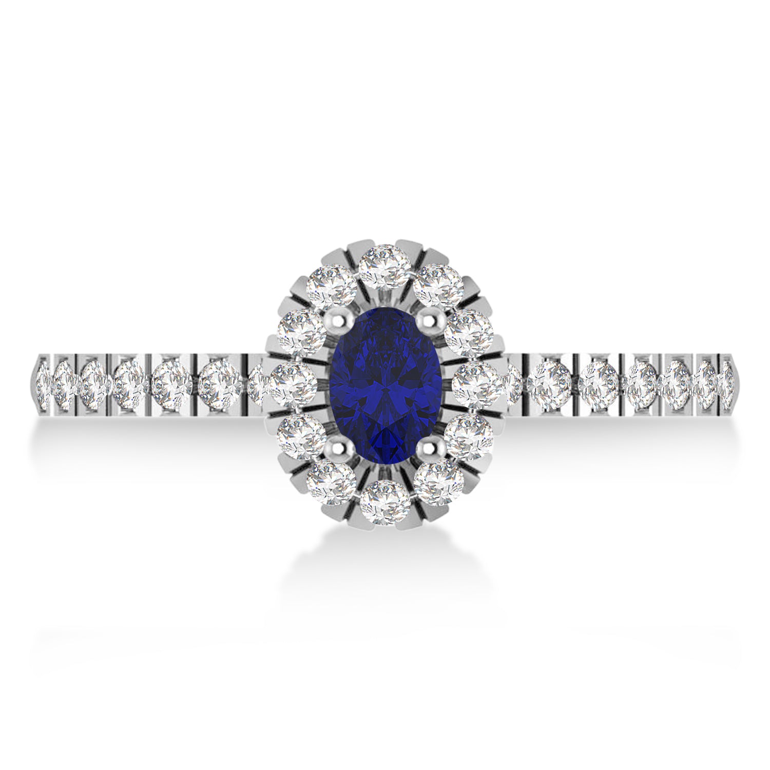 Oval Blue Sapphire & Diamond Halo Engagement Ring 14k White Gold (0.60