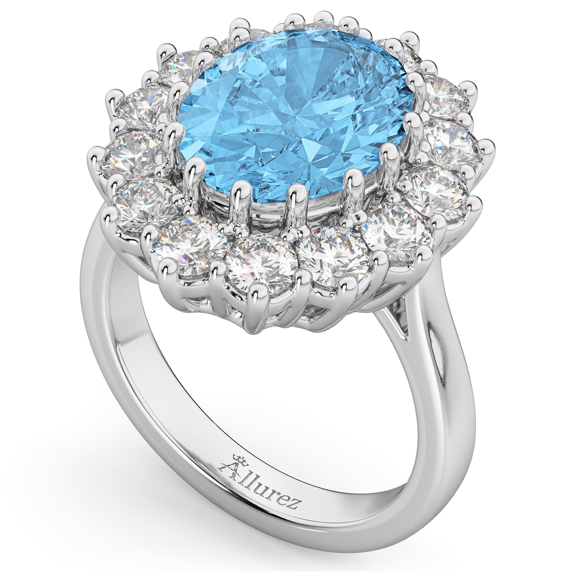 Oval Blue Topaz & Diamond Halo Lady Di Ring 14k White Gold (6.40ct)