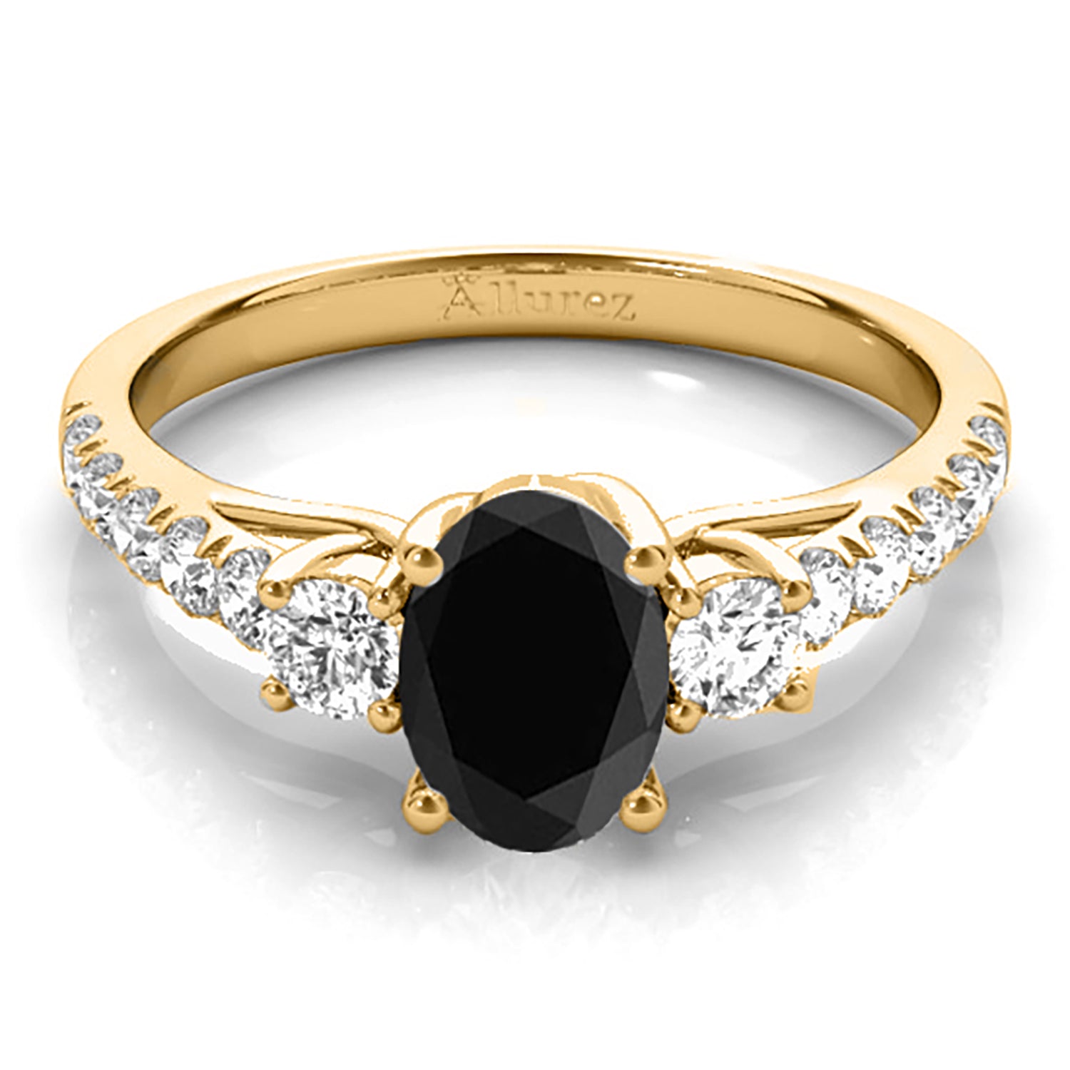 Oval Cut Black & White Diamond Engagement Ring 18k Yellow Gold (1.40ct)