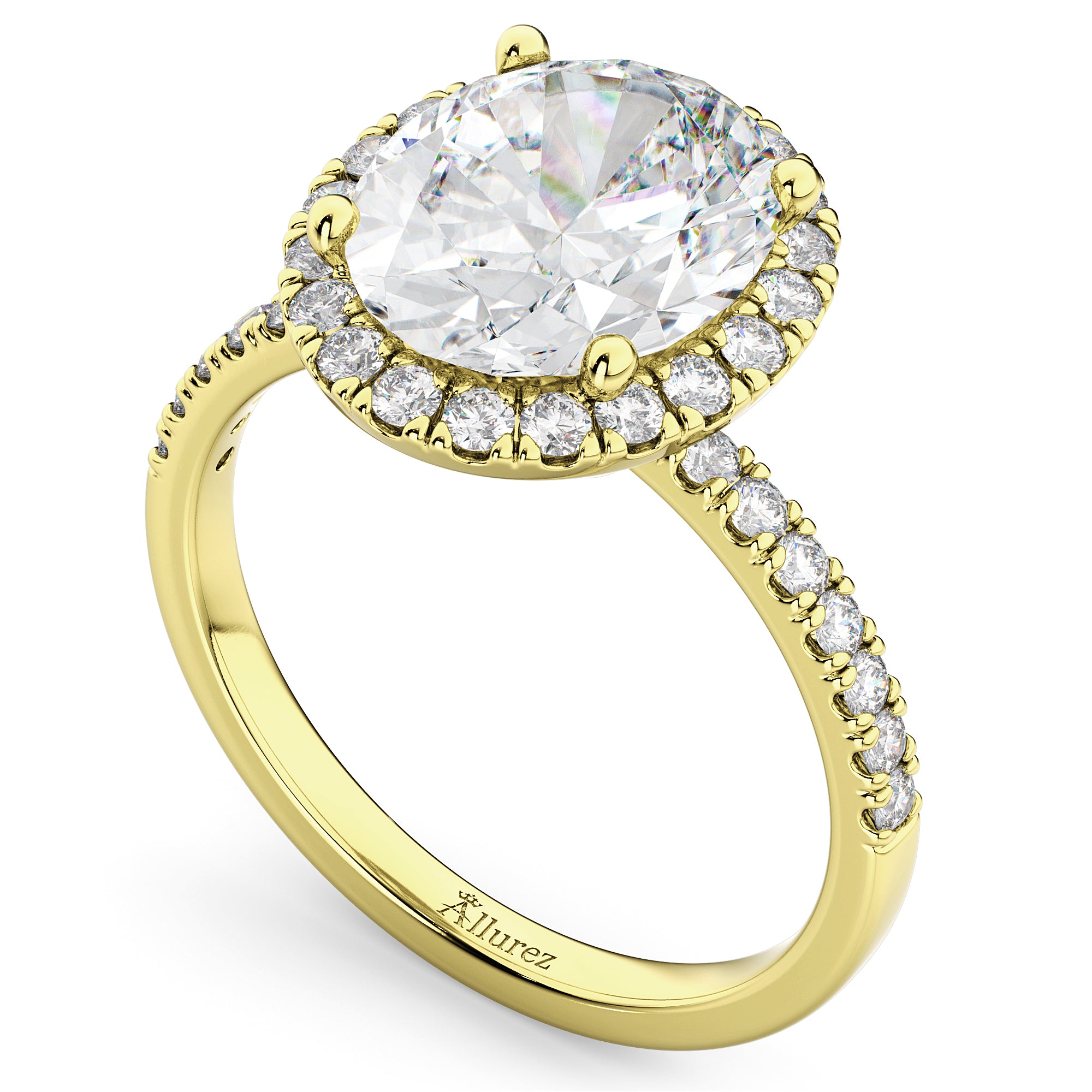 Oval Cut Halo Diamond Engagement Ring 14K Yellow Gold (3.51ct)