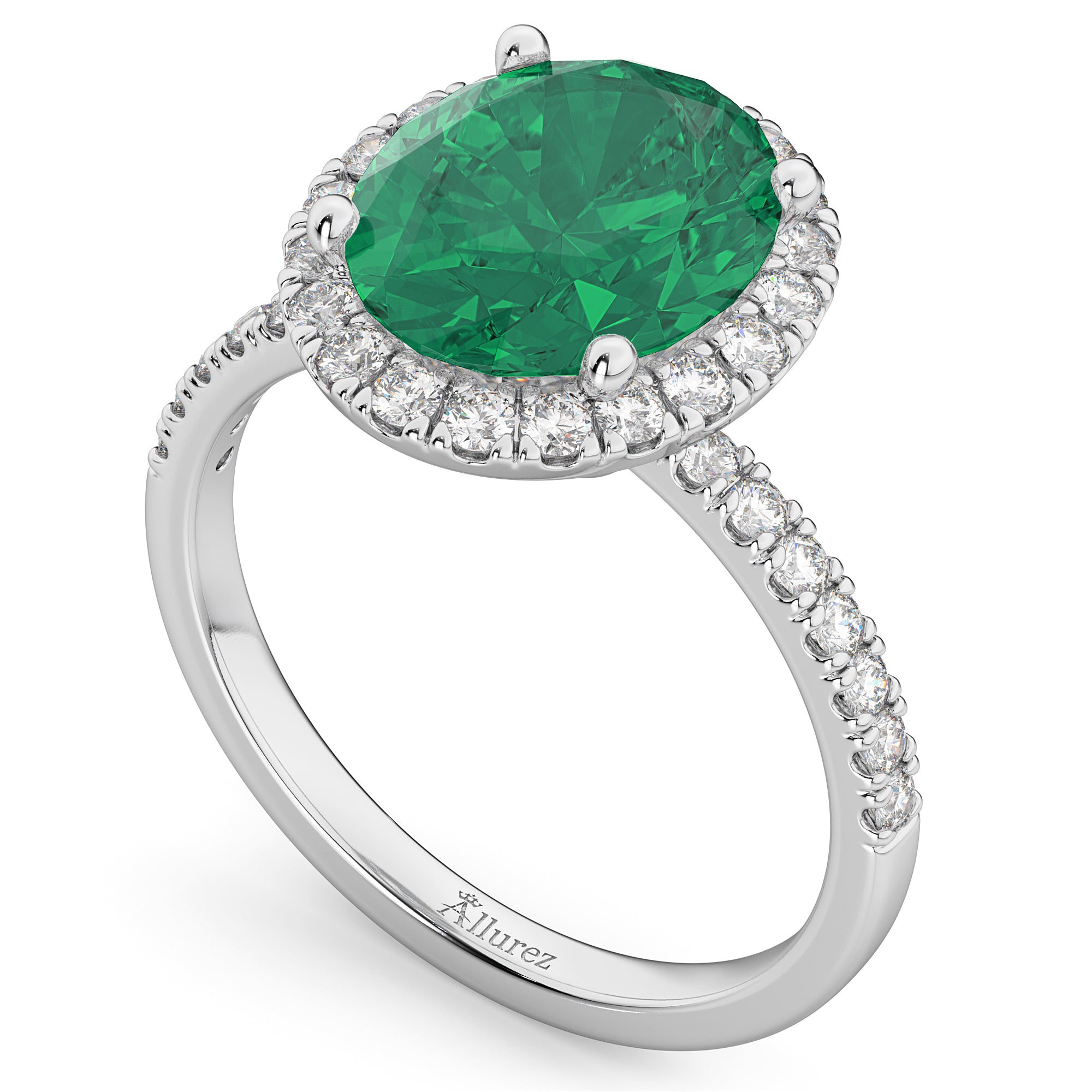 Oval Cut Halo Emerald & Diamond Engagement Ring 14K White Gold 3.11ct